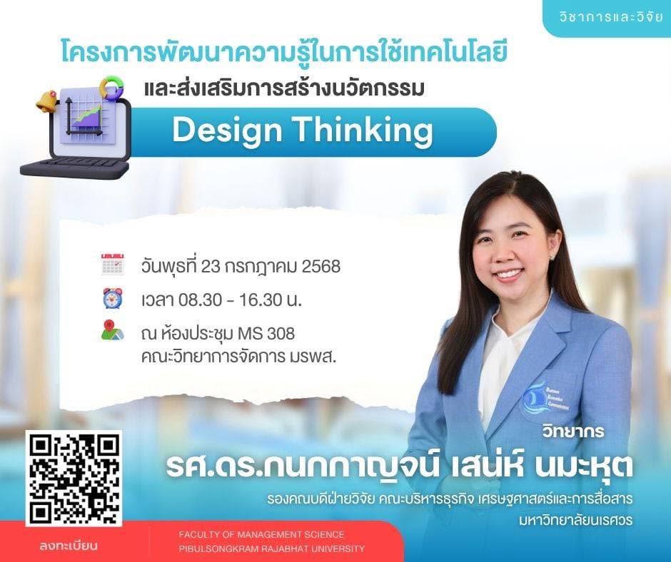 📍ขอเชิญชวนผู้สนใจ เข้าร่วมโครงการพัฒนาความรู้ในการใช้เทคโนโลยีและส่งเสริมการสร้างนวัตกรรม ในหัวข้อ Design Thinking 💡