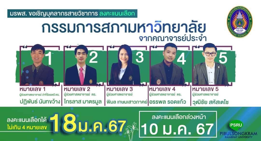 มรพส. ขอเชิญบุคลากรสายวิชาการ ลงคะแนนเลือกกรรมการสภามหาวิทยาลัยจากคณาจารย์ประจำ ![]()