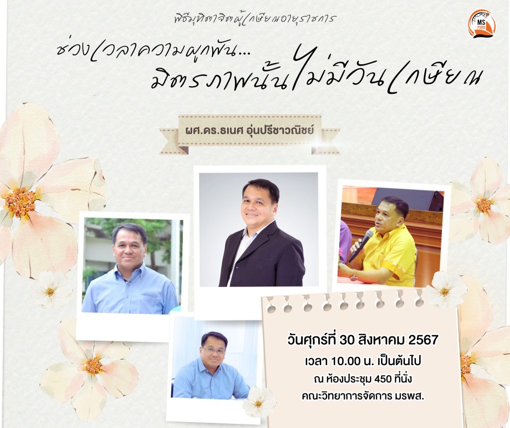 ขอเชิญร่วมพิธีมุทิตาจิตผู้เกษียณอายุราชการ