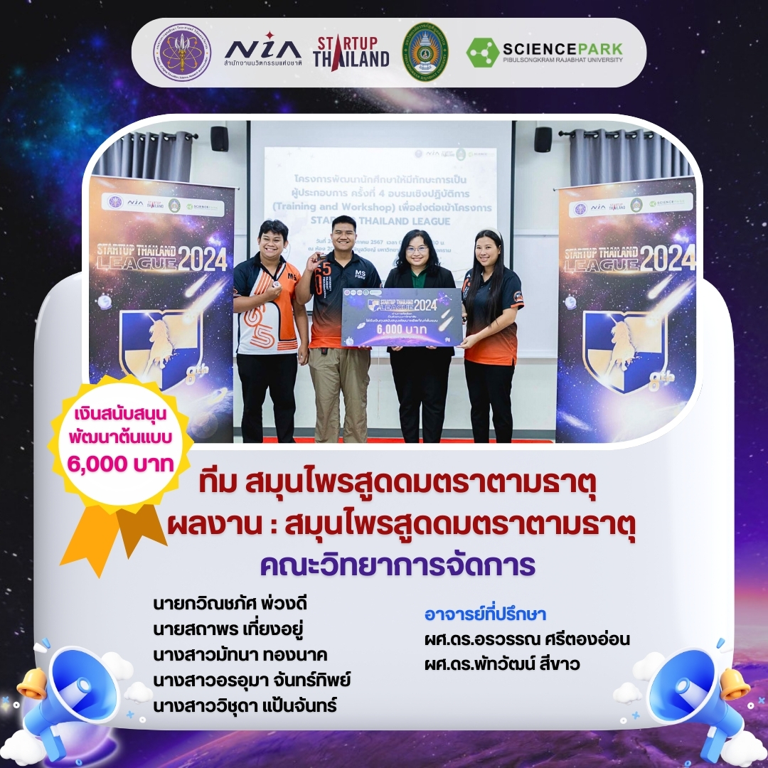 ขอแสดงความยินดีกับนักศึกษาสาขาวิชาการจัดการ ที่ผ่านการคัดเลือกการแข่งขัน Startup Thailand League 2024 ระดับมหาวิทยาลัย ![]()