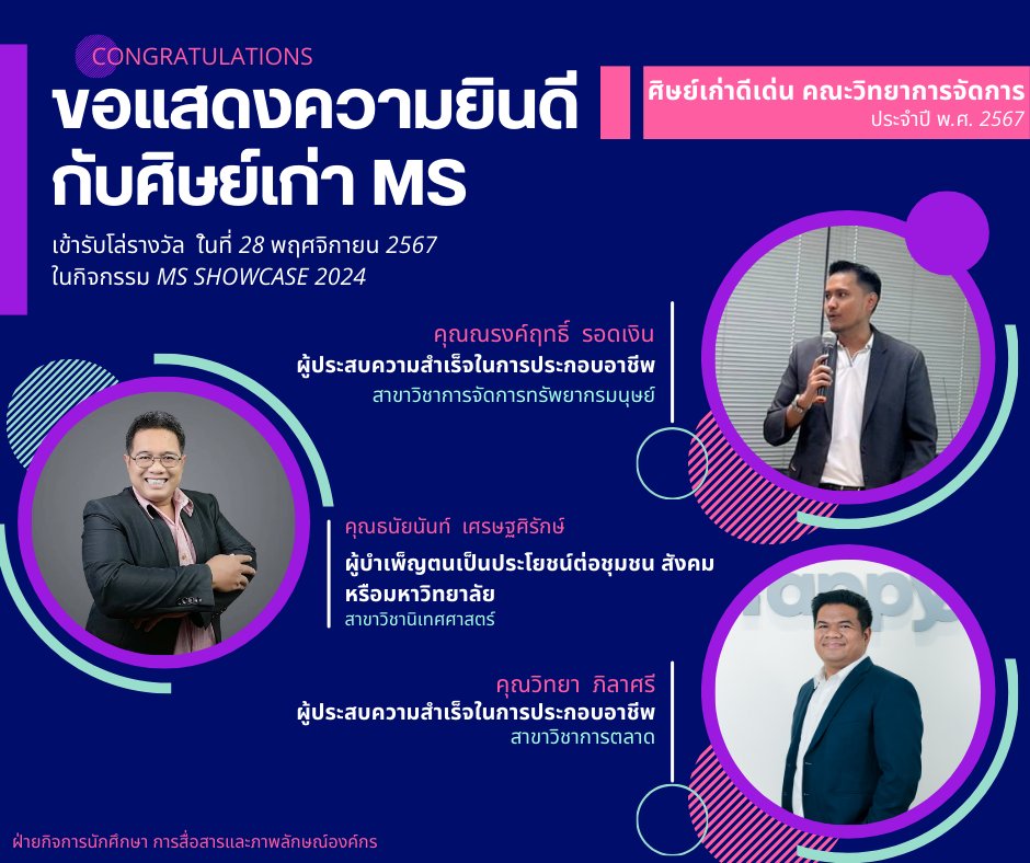 ขอแสดงความยินดีกับศิษย์เก่าคณะวิทยาการจัดการ ประจำปี 2567