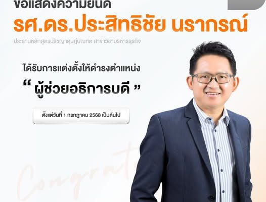ขอแสดงความยินดีกับ รองศาสตราจารย์ ดร.ประสิทธิชัย นรากรณ์