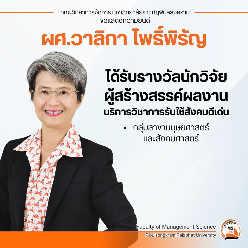 ขอแสดงความยินดี กับ ผศ.วาลิกา โพธิ์พิรัญ อาจารย์ประจำสาขาวิชาการท่องเที่ยวและบริการยุคดิจิทัล “ได้รับรางวัลนักวิจัยผู้สร้างสรรค์ผลงานบริการวิชาการรับใช้สังคมดีเด่น กลุ่มสาขามนุษยศาสตร์และสังคมศาสตร์”