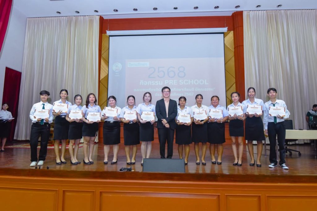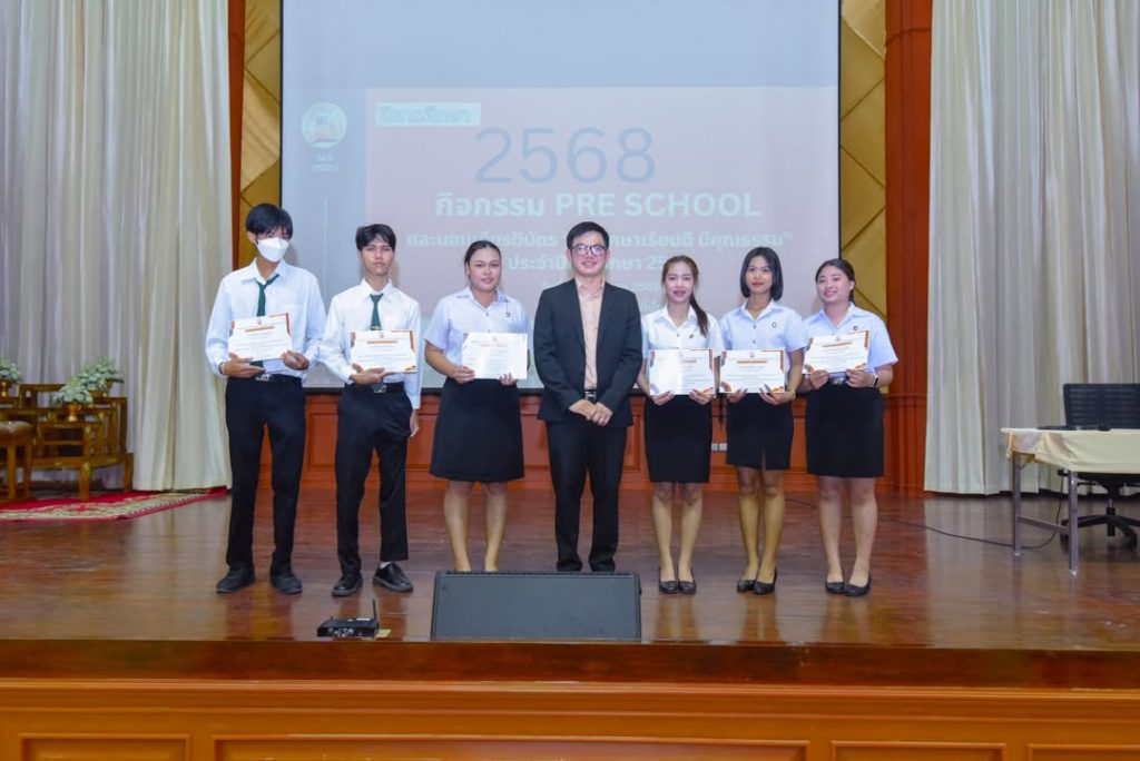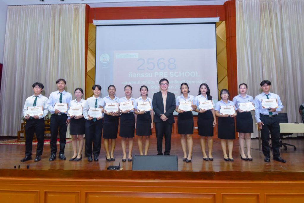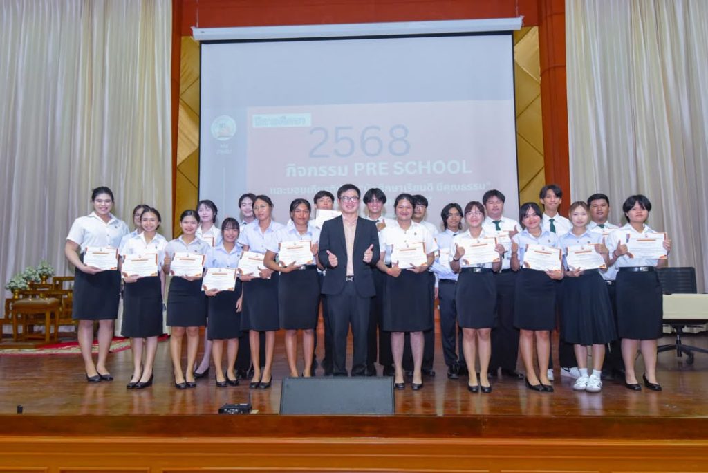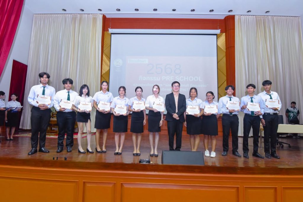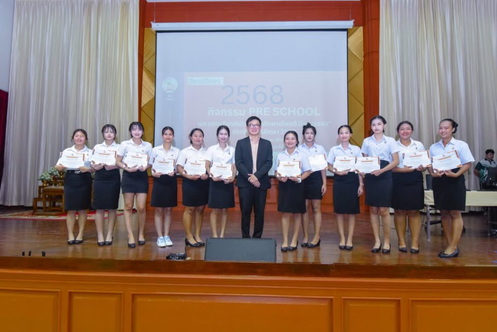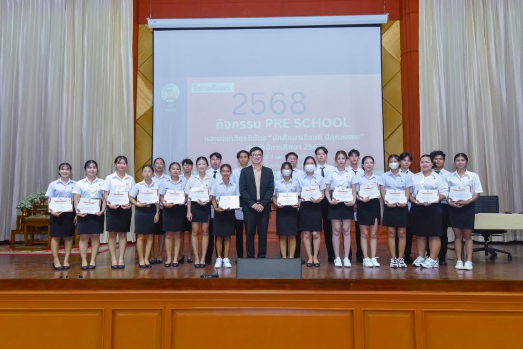 คณะวิทยาการจัดการ จัดกิจกรรม Pre School ปีการศึกษา 2568 สำหรับตัวแทนนักศึกษาทุกชั้นปี พร้อมมอบเกียรติบัตร “นักศึกษาเรียนดี มีคุณธรรม” เพื่อเชิดชูนักศึกษาผู้มุ่งมั่นทั้งด้านการเรียนและคุณธรรม