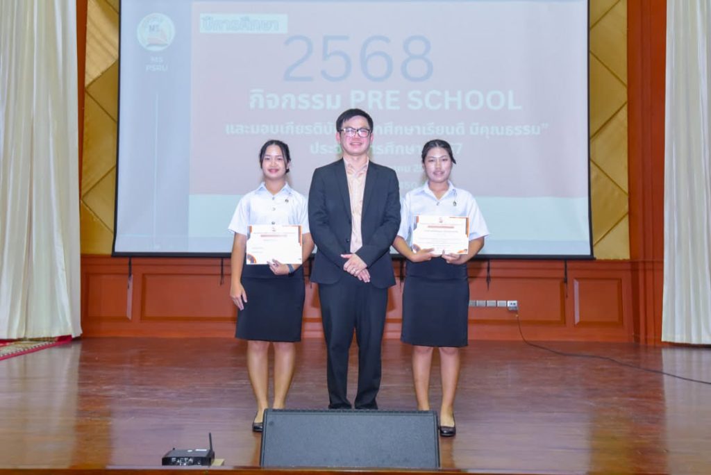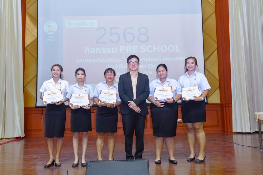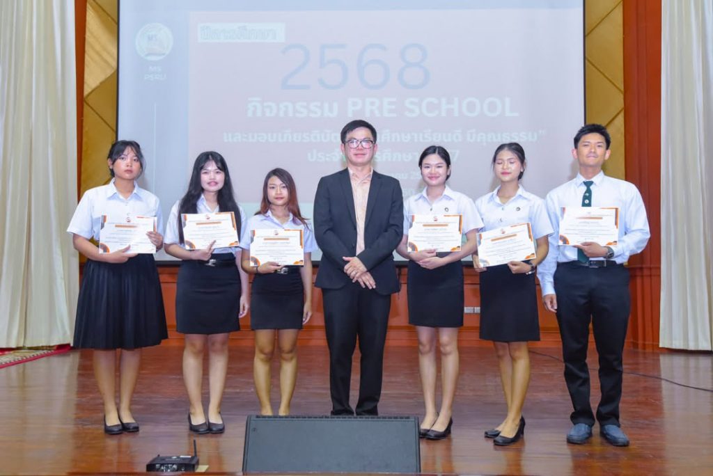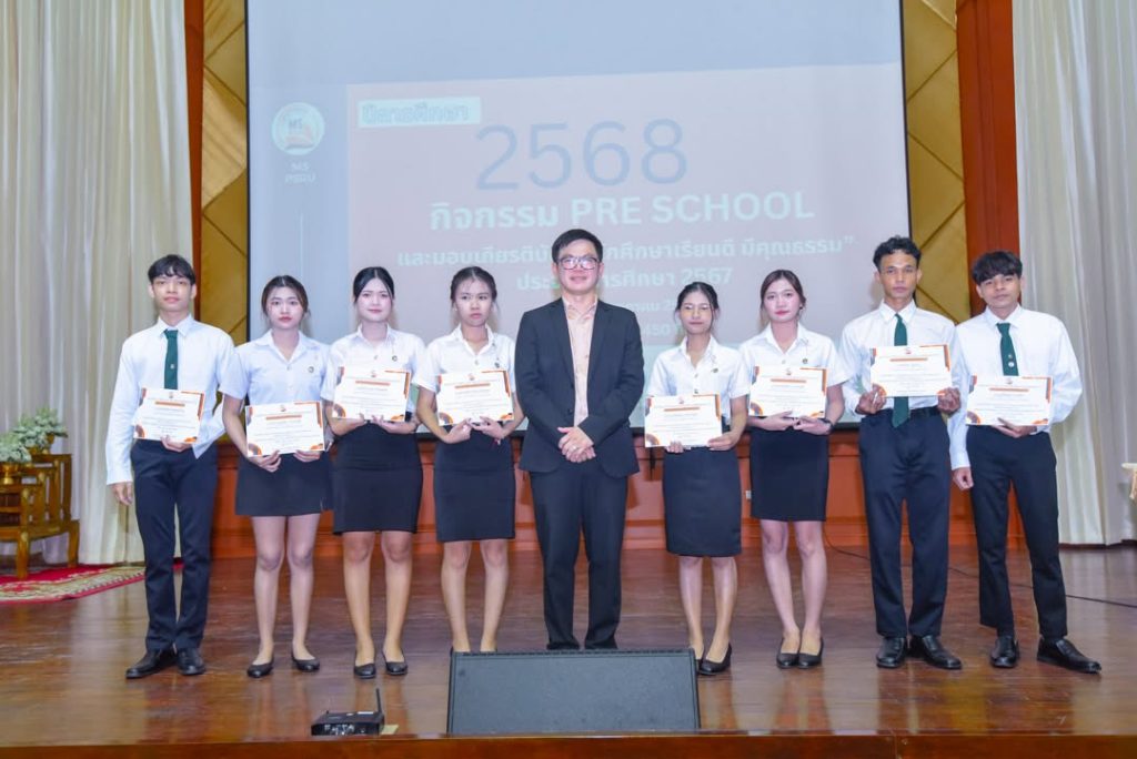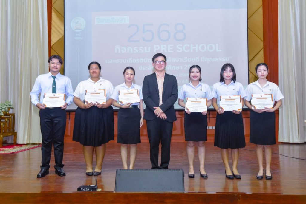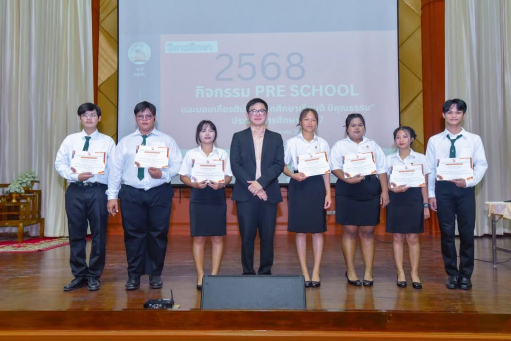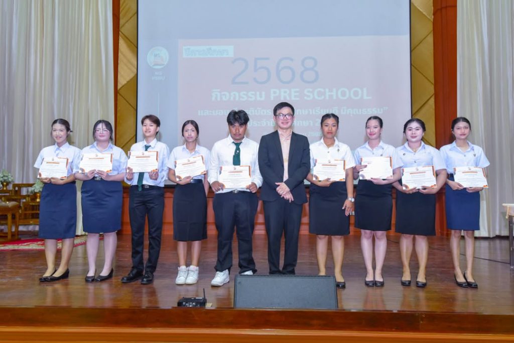 คณะวิทยาการจัดการ จัดกิจกรรม Pre School ปีการศึกษา 2568 สำหรับตัวแทนนักศึกษาทุกชั้นปี พร้อมมอบเกียรติบัตร “นักศึกษาเรียนดี มีคุณธรรม” เพื่อเชิดชูนักศึกษาผู้มุ่งมั่นทั้งด้านการเรียนและคุณธรรม