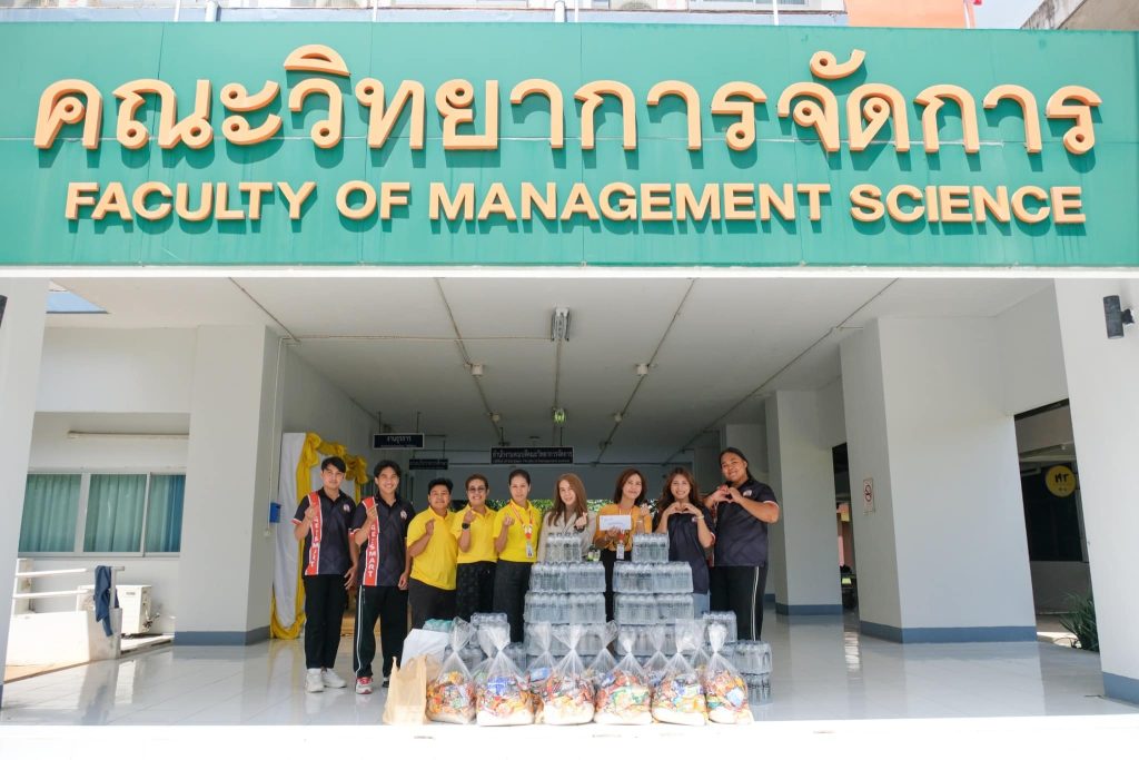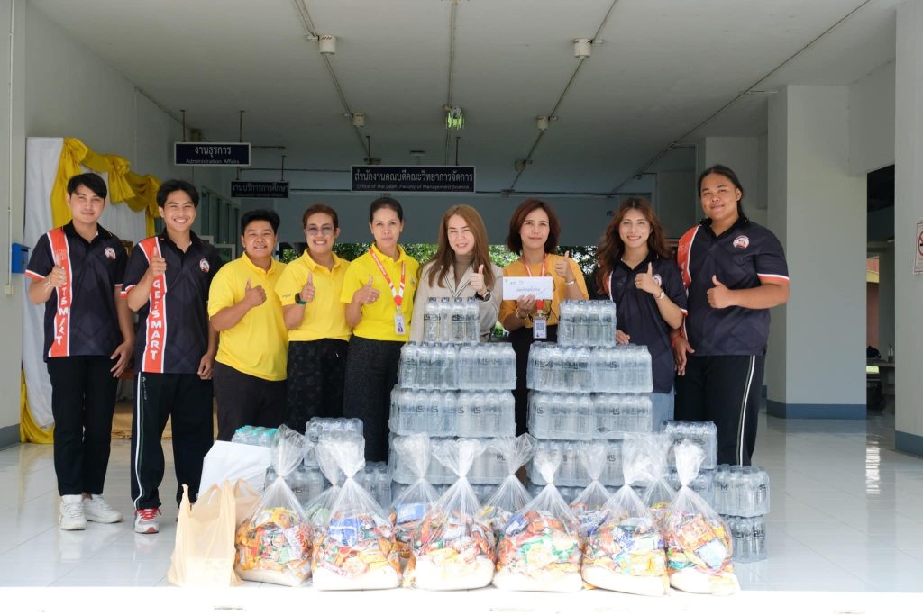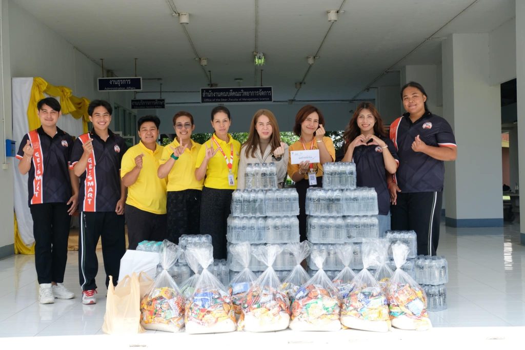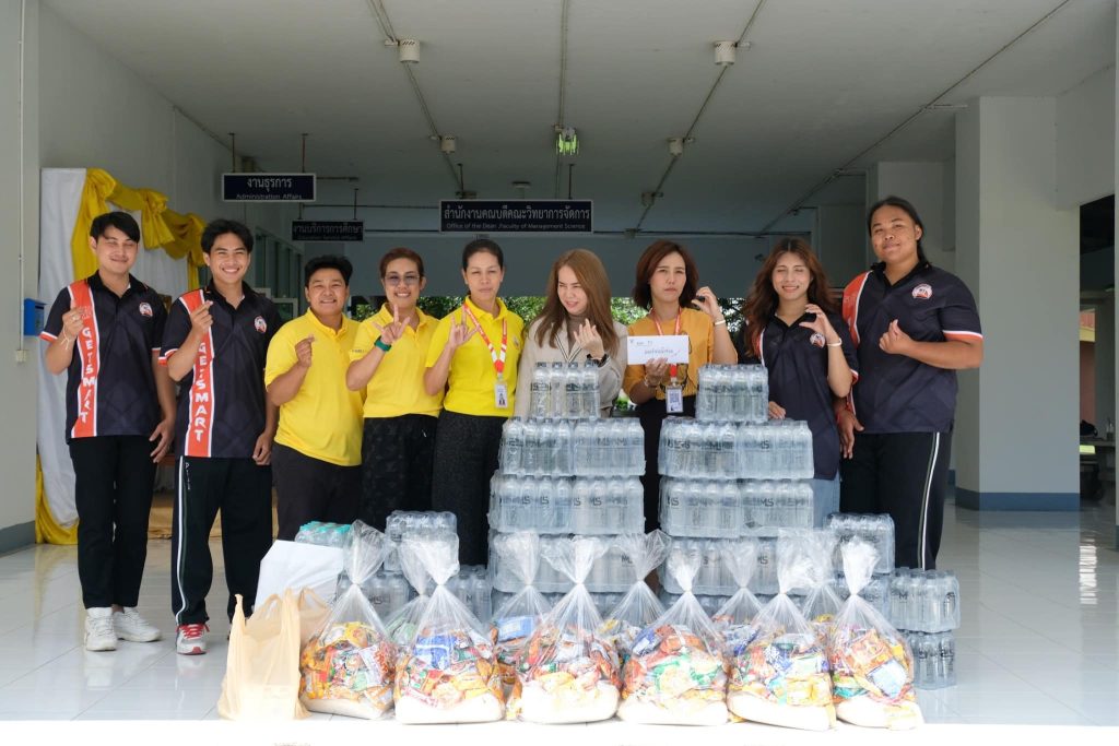 3. เจ้าหน้าที่สำนักงานคณะวิทยาการจัดการ และสโมสรนักศึกษา สนับสนุนข้าวสาร อาหารแห้ง ของใช้จำเป็น และเงินจำนวนหนึ่ง
