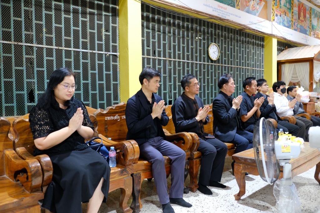 คณะผู้บริหารคณะวิทยาการจัดการ ผู้ช่วยศาสตราจารย์พิชญาพร ประครองใจ รองคณบดีฝ่ายพัฒนานักศึกษา รองศาสตราจารย์ ดร.ณภัทร วุฒธะพันธ์ รองคณบดีฝ่ายวิชาการและวิจัย พร้อมด้วยคณาจารย์และบุคลากร ร่วมพิธีสวดพระอภิธรรม คุณพ่อประเสริฐ ยรรยง บิดานางฉันทนา เอี่ยมวชิรากุล หัวหน้างานพัฒนาทรัพยากรมนุษย์ กองบริหารงานบุคคล