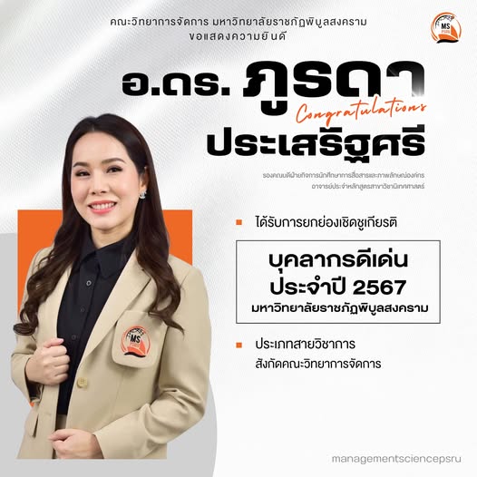 คณะวิทยาการจัดการ ขอแสดงความยินดีกับอาจารย์ ดร.ภูรดา ประเสริฐศรี