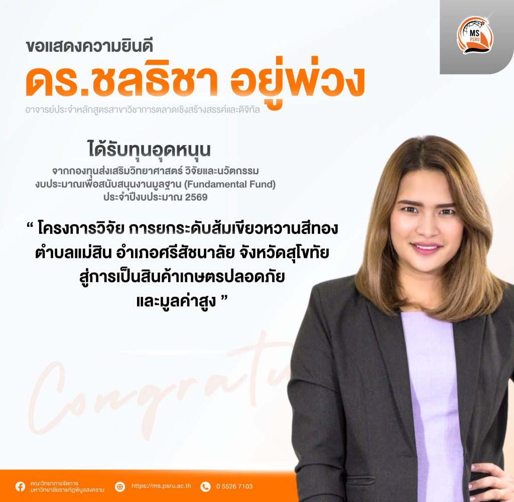 ✅ กับ ดร.ชลธิชา อยู่พ่วง อาจารย์ประจำหลักสูตรสาขาวิชาการตลาดเชิงสร้างสรรค์และดิจิทัล