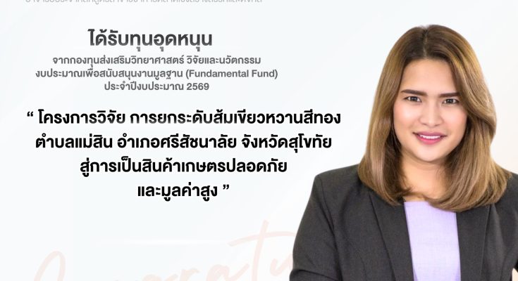 ▫️“ โครงการวิจัย การยกระดับส้มเขียวหวานสีทอง ตำบลแม่สิน อำเภอศรีสัชนาลัย จังหวัดสุโขทัย สู่การเป็นสินค้าเกษตรปลอดภัยและมูลค่าสูง ”