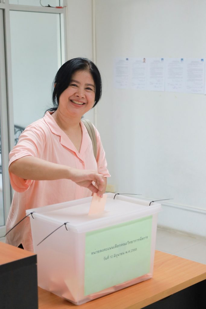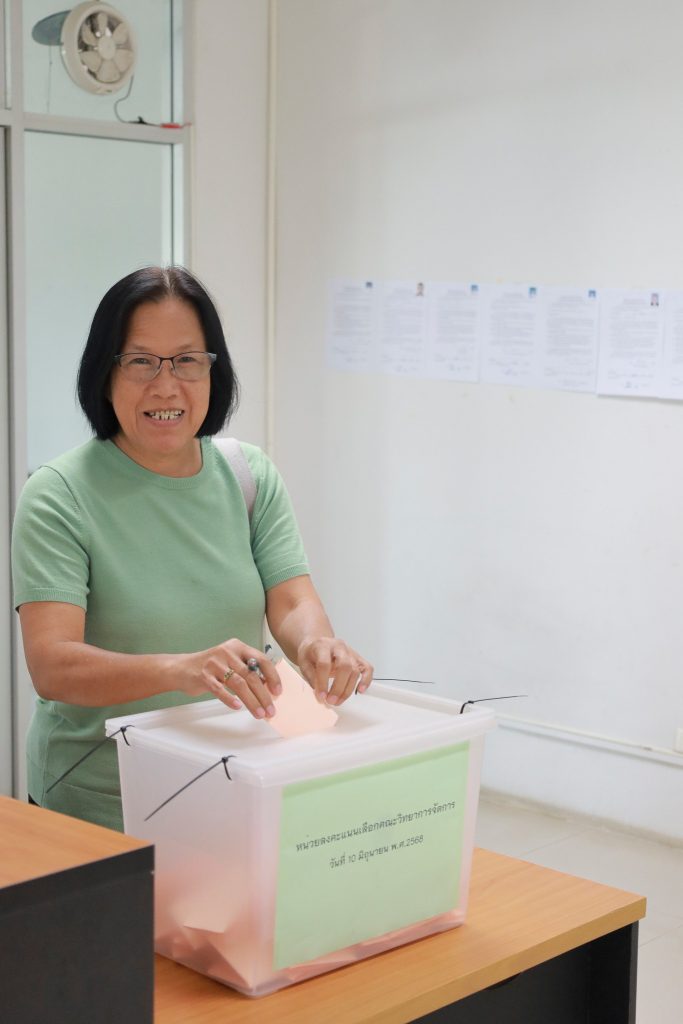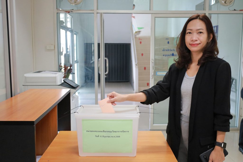 กิจกรรมการลงคะแนนเสียงครั้งนี้เป็นไปด้วยความเรียบร้อย โปร่งใส และมีคณาจารย์ประจำเข้าร่วมแสดงสิทธิอย่างพร้อมเพรียง สะท้อนถึงความตระหนักรู้ในบทบาทของคณาจารย์ในฐานะผู้ร่วมกำหนดทิศทางการพัฒนามหาวิทยาลัยผ่านกลไกประชาธิปไตยทางวิชาการ