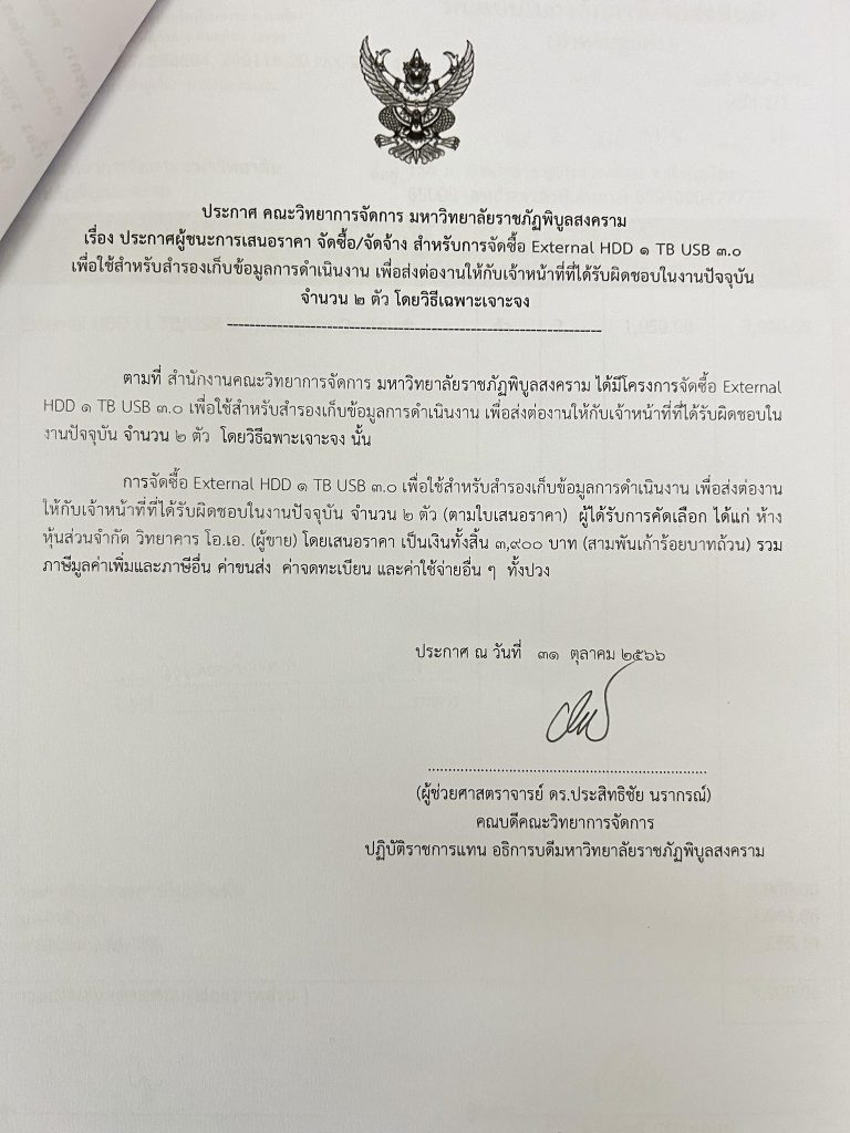 ข่าวประกาศผู้ชนะราคาประกาศผู้ชนะการเสนอราคา จัดซื้อ/จัดจ้าง สำหรับการจัดซื้อ External HDD 1 TB USB 3.0 จำนวน 2 ตัว พฤศจิกายน 12, 2023พฤศจิกายน 12, 2023 - by ปาลิดา เรียญเพ็ช FacebookFacebookXTwitterLINELine