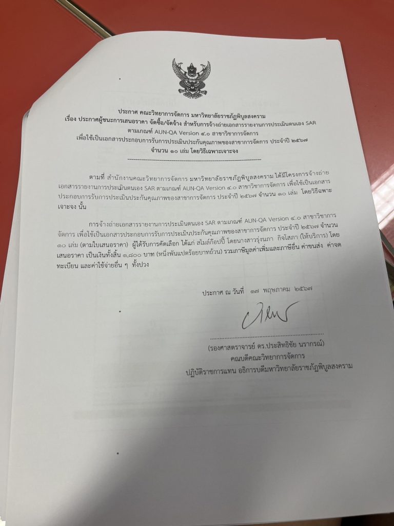 ข่าวประกาศผู้ชนะราคาประกาศ คณะวิทยาการจัดการ มหาวิทยลัยราชภัฎพิบูลสงคราม เรื่อง ประกาศผู้ชนะการเสนอราคา จัดซื้อ/จัดจ้าง สำหรับการจ้างถ่ายเอกสารงานการประเมินตนเอง SAR ตามเกณฑ์ AUN-QA Version 4.0 สาขาวิชาการจัดการ จำนวน 10 เล่ม กรกฎาคม 31, 2024ตุลาคม 6, 2024 - by ปาลิดา เรียญเพ็ช FacebookFacebookXTwitterLINELine