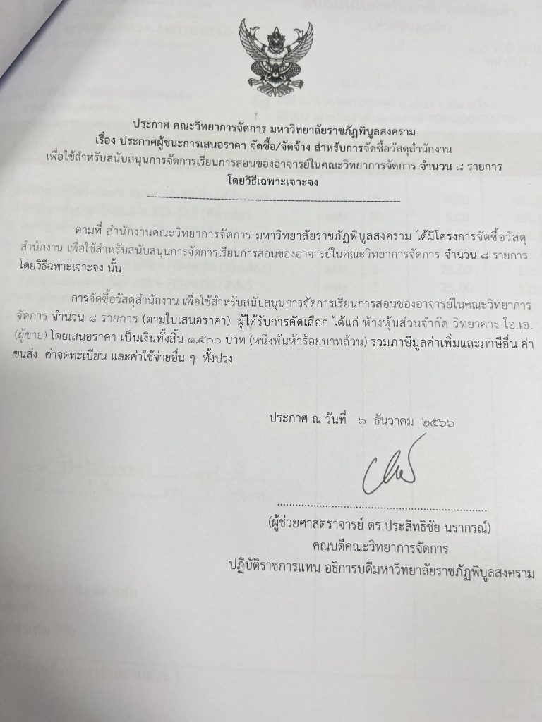 ข่าวประกาศผู้ชนะราคาประกาศ คณะวิทยาการจัดการ มหาวิทยาลัยราชภัฏพิบูลสงครามเรื่อง ประกาศผู้ชนะการเสนอราคา จัดซื้อ/จัดจ้าง สำหรับการจัดซื้อวัสดุสำนักงาน จำนวน 8 รายการ มกราคม 21, 2024มกราคม 21, 2024 - by ปาลิดา เรียญเพ็ช FacebookFacebookXTwitterLINELine