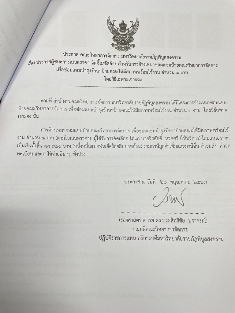ข่าวประกาศผู้ชนะราคาประกาศ คณะวิทยาการจัดการ มหาวิทยาลัยราชภัฏพิบูลสงคราม เรื่อง ประกาศผู้ชนะการเสนอราคา จัดซื้อ/จัดจ้าง สำหรับการ จ้างเหมาซ่อมแซมป้ายคณะวิทยาการจัดการ จำนวน 1 งาน มิถุนายน 18, 2024 - by ปาลิดา เรียญเพ็ช FacebookFacebookXTwitterLINELine