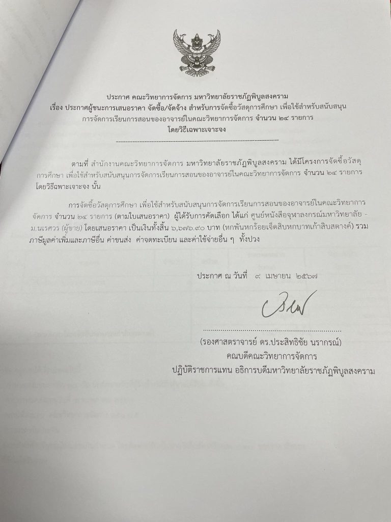 ข่าวประกาศผู้ชนะราคาประกาศ คณะวิทยาการจัดการ มหาวิทยาลัยราชภัฏพิบูลสงคราม เรื่อง ประกาศผู้ชนะการเสนอราคา จัดซื้อ/จัดจ้าง สำหรับการซื้อวัสดุการศึกษา จำนวน 24 รายการ มิถุนายน 18, 2024มิถุนายน 18, 2024 - by ปาลิดา เรียญเพ็ช FacebookFacebookXTwitterLINELine