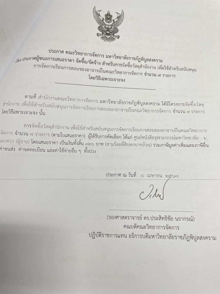 ข่าวประกาศผู้ชนะราคาประกาศ คณะวิทยาการจัดการ มหาวิทยาลัยราชภัฏพิบูลสงคราม เรื่อง ประกาศผู้ชนะการเสนอราคา จัดซื้อ/จัดจ้าง สำหรับการซื้อวัสดุสำนักงาน จำนวน 7 รายการ มิถุนายน 18, 2024 - by ปาลิดา เรียญเพ็ช FacebookFacebookXTwitterLINELine