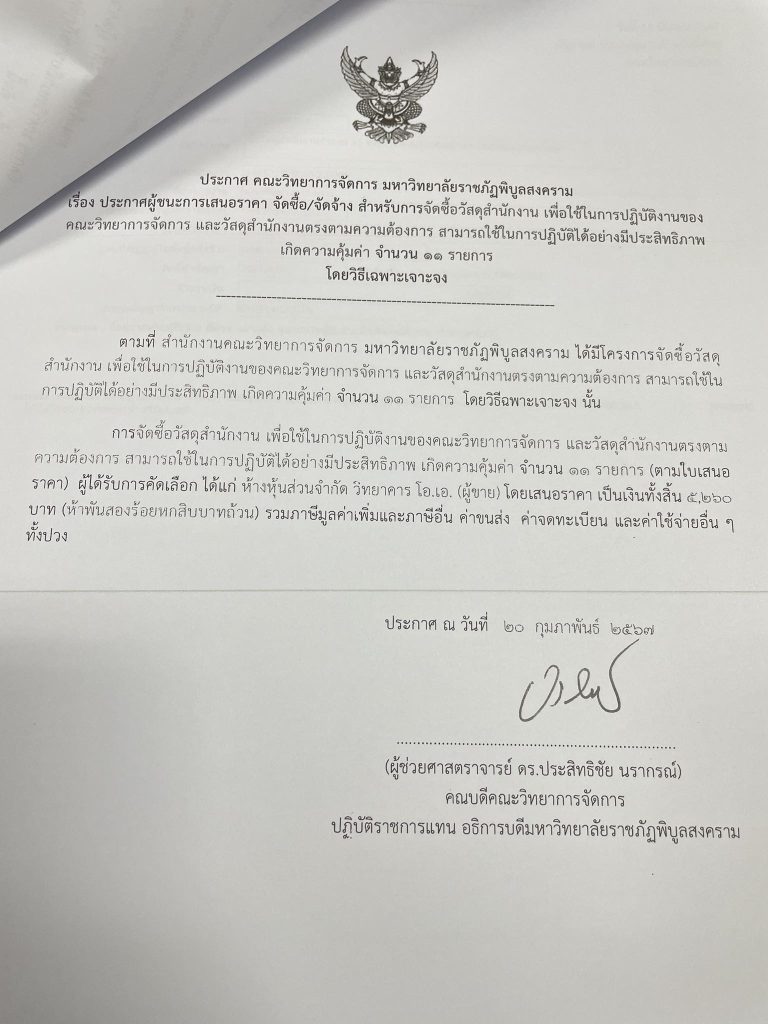 ข่าวประกาศผู้ชนะราคาประกาศ คณะวิทยาการจัดการ มหาวิทยาลัยราชภัฏพิบูลสงคราม เรื่อง ประกาศผู้ชนะการเสนอราคา จัดซื้อ/จัดจ้าง สำหรับการซื้อวัสดุสำนักงาน จำนวน 11 รายการ มิถุนายน 18, 2024 - by ปาลิดา เรียญเพ็ช FacebookFacebookXTwitterLINELine