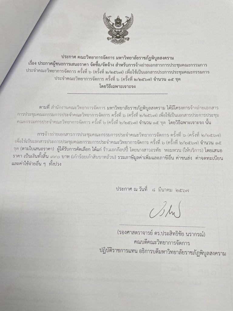 ข่าวประกาศผู้ชนะราคาประกาศ คณะวิทยาการจัดการ มหาวิทยาลัยราชภัฏพิบูลสงคราม เรื่อง ประกาศผู้ชนะการเสนอราคา จัดซื้อ/จัดจ้าง สำหรับการจ้างถ่ายเอกสารการประชุมคณะกรรมการประจำคณะวิทยาการจัดการ ครั้งที่ 6 (ครั้งที่ 2/2567) จำนวน 15 ชุด มิถุนายน 18, 2024 - by ปาลิดา เรียญเพ็ช FacebookFacebookXTwitterLINELine