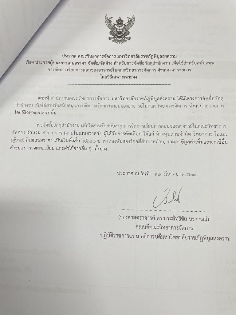ข่าวประกาศผู้ชนะราคาประกาศ คณะวิทยาการจัดการ มหาวิทยาลัยราชภัฏพิบูลสงคราม เรื่อง ประกาศผู้ชนะการเสนอราคา จัดซื้อ/จัดจ้าง สำหรับการซื้อวัสดุสำนักงาน จำนวน 5 รายการ มิถุนายน 18, 2024 - by ปาลิดา เรียญเพ็ช FacebookFacebookXTwitterLINELine