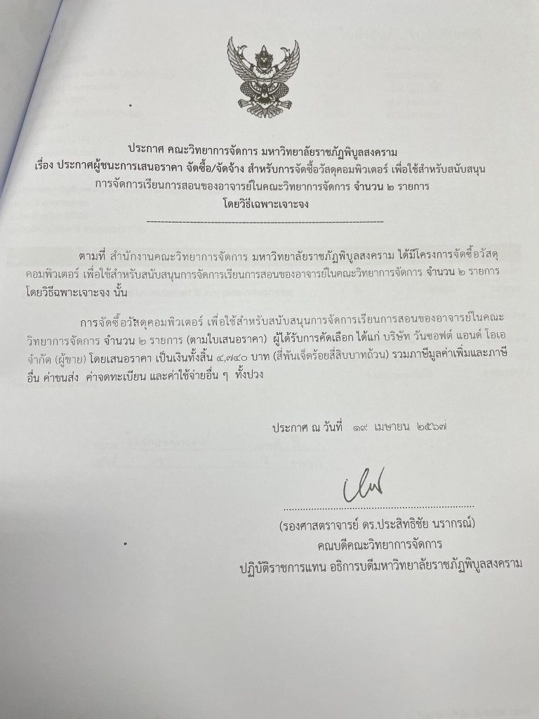 ข่าวประกาศผู้ชนะราคาประกาศ คณะวิทยาการจัดการ มหาวิทยาลัยราชภัฏพิบูลสงคราม เรื่อง ประกาศผู้ชนะการเสนอราคา จัดซื้อ/จัดจ้าง สำหรับการซื้อวัสดุคอมพิวเตอร์ จำนวน 2 รายการ มิถุนายน 18, 2024มิถุนายน 18, 2024 - by ปาลิดา เรียญเพ็ช FacebookFacebookXTwitterLINELine