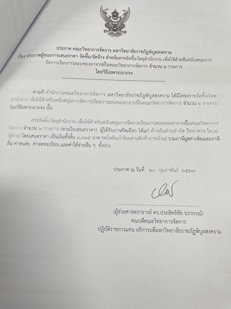 ข่าวประกาศผู้ชนะราคาประกาศ คณะวิทยาการจัดการ มหาวิทยาลัยราชภัฏพิบูลสงคราม เรื่อง ประกาศผู้ชนะการเสนอราคา จัดซื้อ/จัดจ้าง สำหรับการซื้อวัสดุสำนักงาน จำนวน 2 รายการ มิถุนายน 18, 2024 - by ปาลิดา เรียญเพ็ช FacebookFacebookXTwitterLINELine