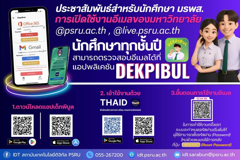 @live.psru.ac.th ได้ผ่านแอปพลิเคชัน Dekpibul ได้แล้ววันนี้