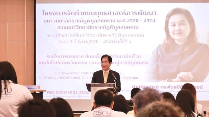 เมื่อวันที่ 19 พฤษภาคม 2568 ที่ผ่านมา ผู้ช่วยศาสตราจารย์วุฒิชัย สหัสเตโช คณบดีคณะวิทยาการจัดการ มหาวิทยาลัยราชภัฏพิบูลสงคราม พร้อมด้วยคณะผู้บริหาร คณาจารย์ และบุคลากร เข้าร่วมโครงการจัดทำแผนยุทธศาสตร์การพัฒนามหาวิทยาลัยราชภัฏพิบูลสงคราม พ.ศ. 2570–2574 (ครั้งที่ 2) ณ ห้องประชุม MEETING HALL ชั้น 4 สำนักวิทยบริการและเทคโนโลยีสารสนเทศ เพื่อร่วมระดมความคิดเห็น วิเคราะห์บริบทการเปลี่ยนแปลง และกำหนดทิศทางการพัฒนามหาวิทยาลัยในระยะ 5 ปีข้างหน้า โดยเน้นการยกระดับคุณภาพการจัดการศึกษา การวิจัย และการบริการวิชาการ ให้สอดคล้องกับยุทธศาสตร์ชาติและความต้องการของท้องถิ่นอย่างยั่งยืน