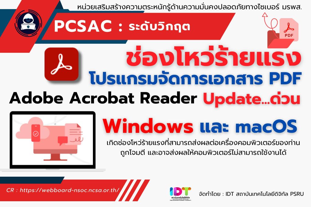 พบช่องโหว่ร้ายแรง Update…ด่วน โปรแกรมจัดการเอกสาร PDF Adobe Acrobat Reader