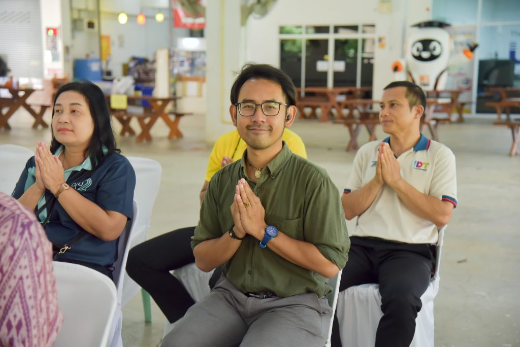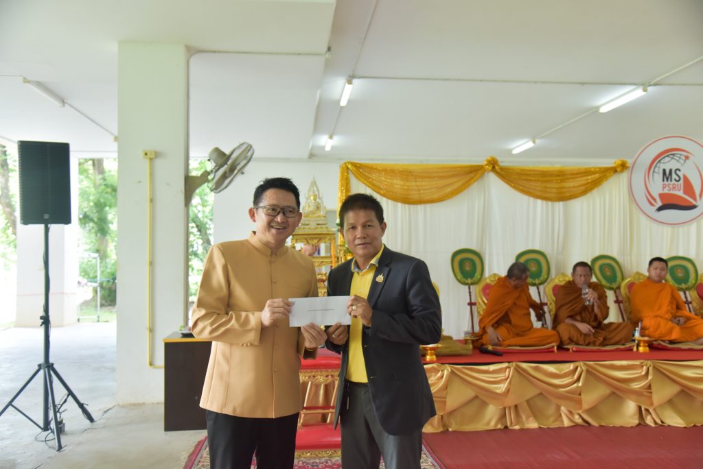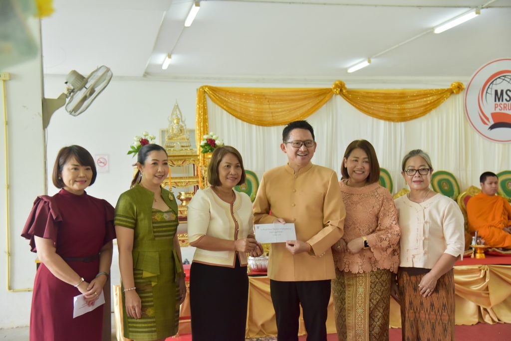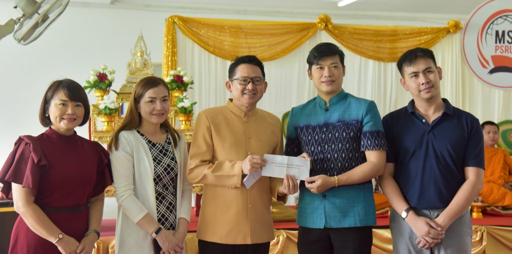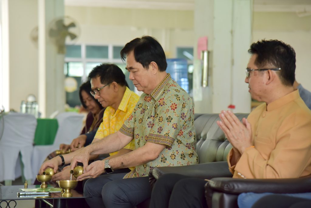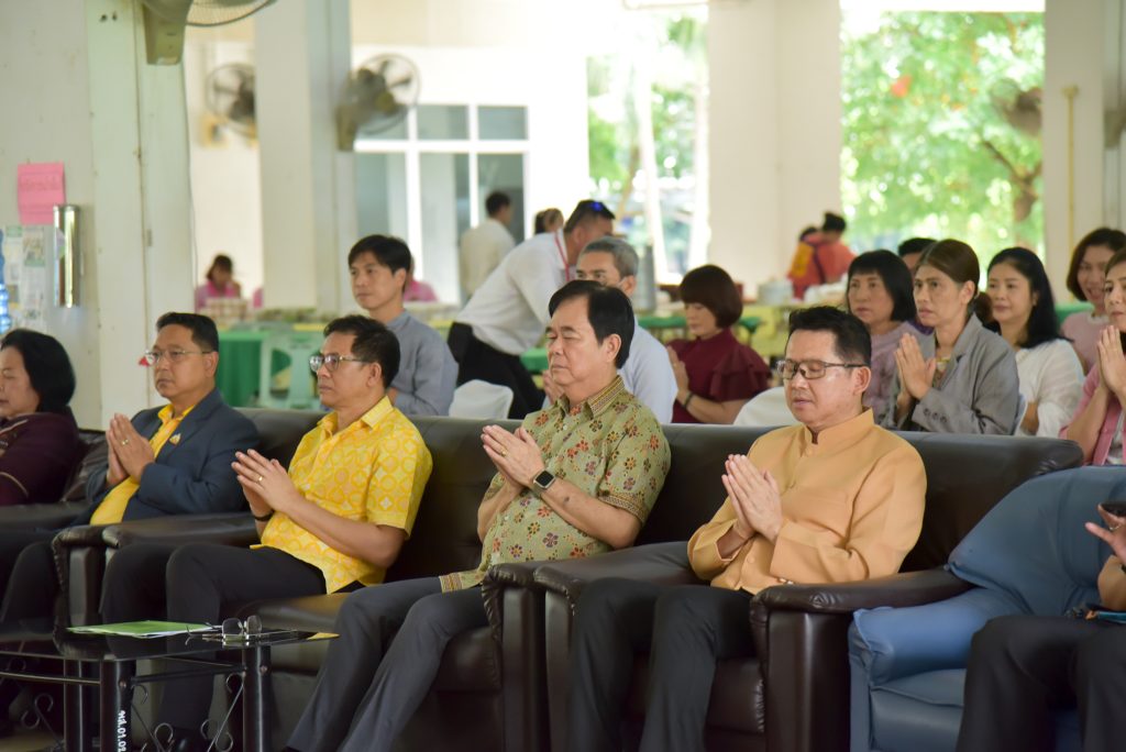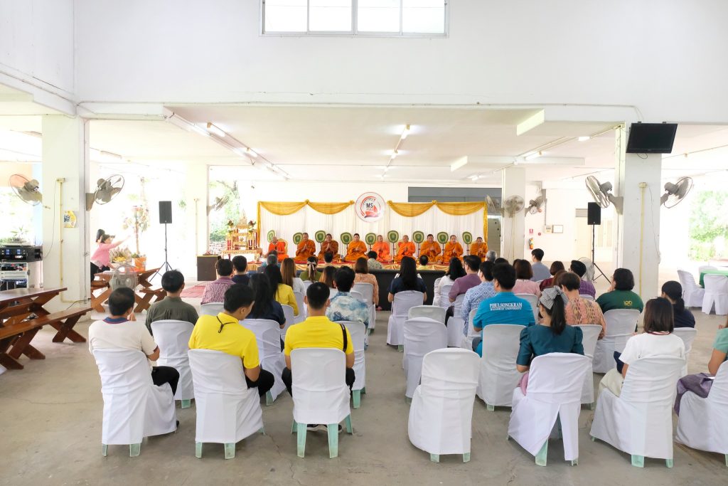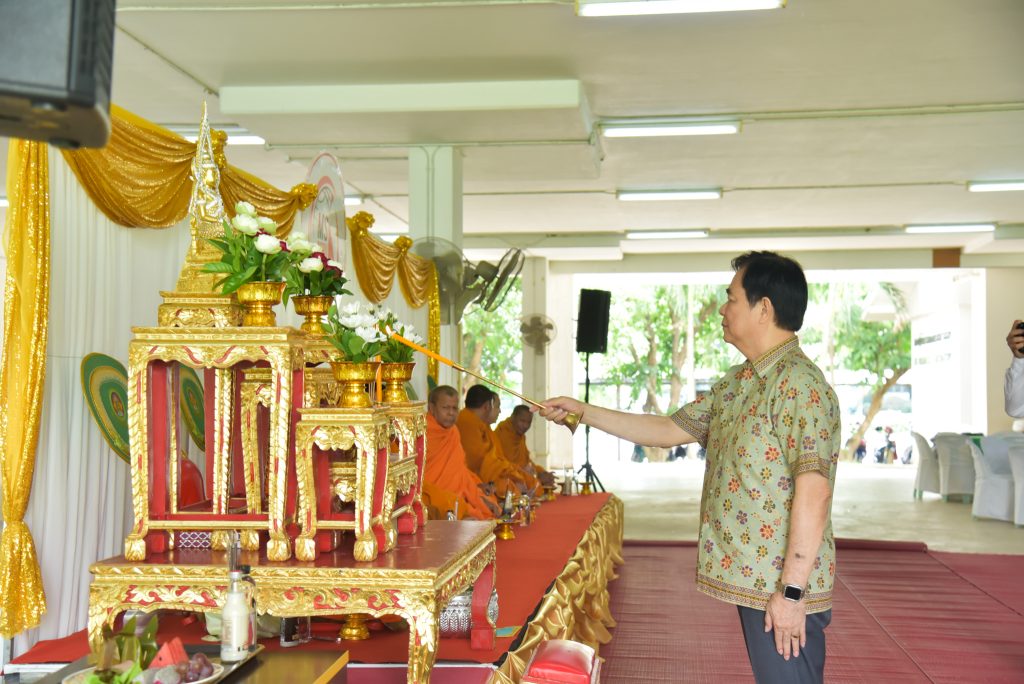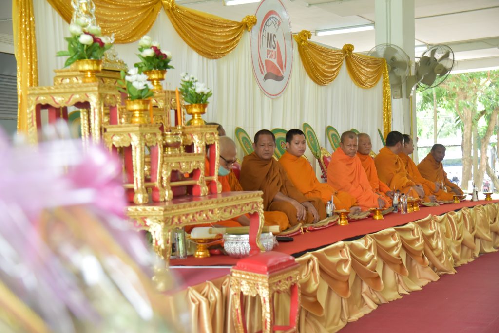ณ ลานกิจกรรมคณะวิทยาการจัดการ มรพส. โดยได้รับเกียรติจาก ผู้ช่วยศาสตราจารย์ ดร.ชุมพล เสมาขันธ์ อธิการบดี เป็นประธานจุดธูปเทียนบูชาพระรัตนตรัย พร้อมด้วยคณะผู้บริหารมหาวิทยาลัย ตัวแทนจากคณะฯ หน่วยงานภายในมหาวิทยาลัย เข้าร่วมในกิจกรรมครั้งนี้