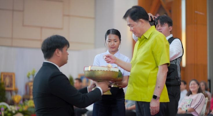 พิธีไหว้ครูเเละมอบเข็มตรามหาวิทยาลัย ภาคปกติ ปีการศึกษา 2568