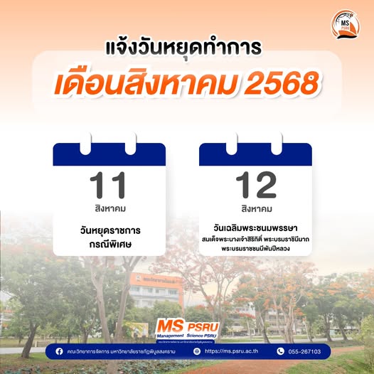 055-267-103 #MSPSRU#PSRU#แจ้งวันหยุดทำการ