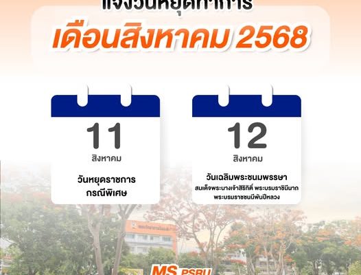 055-267-103 #MSPSRU#PSRU#แจ้งวันหยุดทำการ