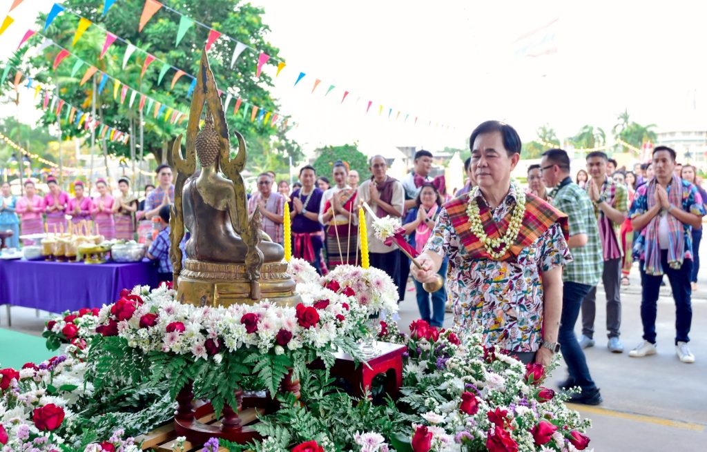 เมื่อวันที่ 4 เมษายน 2568 ที่ผ่านมา คณะวิทยาการจัดการ นำโดยผู้ช่วยศาสตราจารย์วุฒิชัย สหัสเตโช คณบดีคณะวิทยาการจัดการ พร้อมด้วยคณาจารย์และบุคลากร ร่วมประเพณีสงกรานต์ “สงกรานต์พิบูล ม่วนซื่นผ้าขาวม้า” ณ อาคารทีปวิชญ์ มหาวิทยาลัยราชภัฏพิบูลสงคราม (ส่วนทะเลแก้ว)