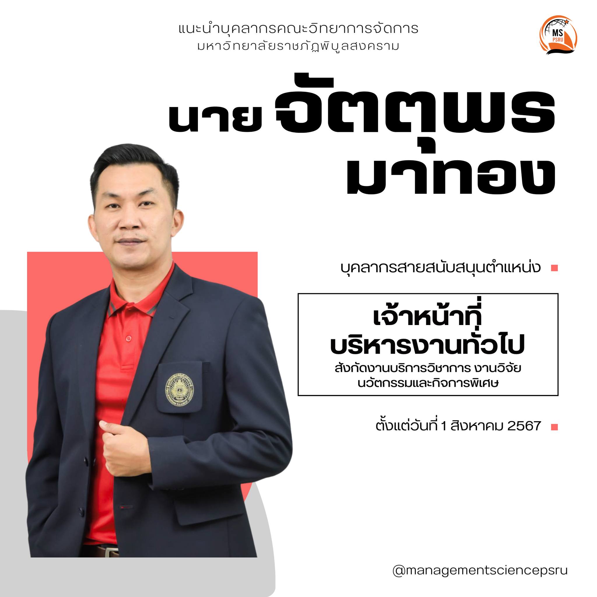 นายจัตตุพร มาทอง ตำแหน่ง เจ้าหน้าที่บริหารงานทั่วไป