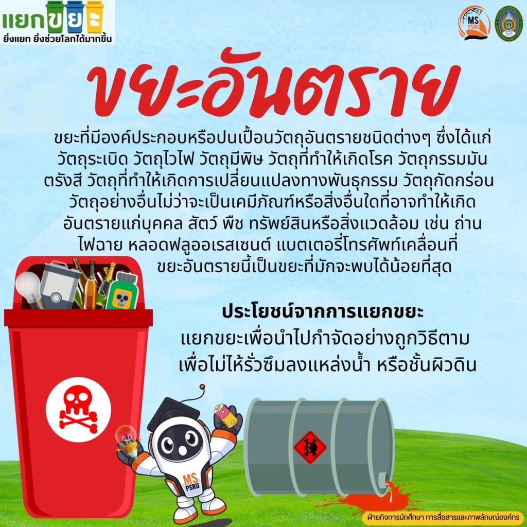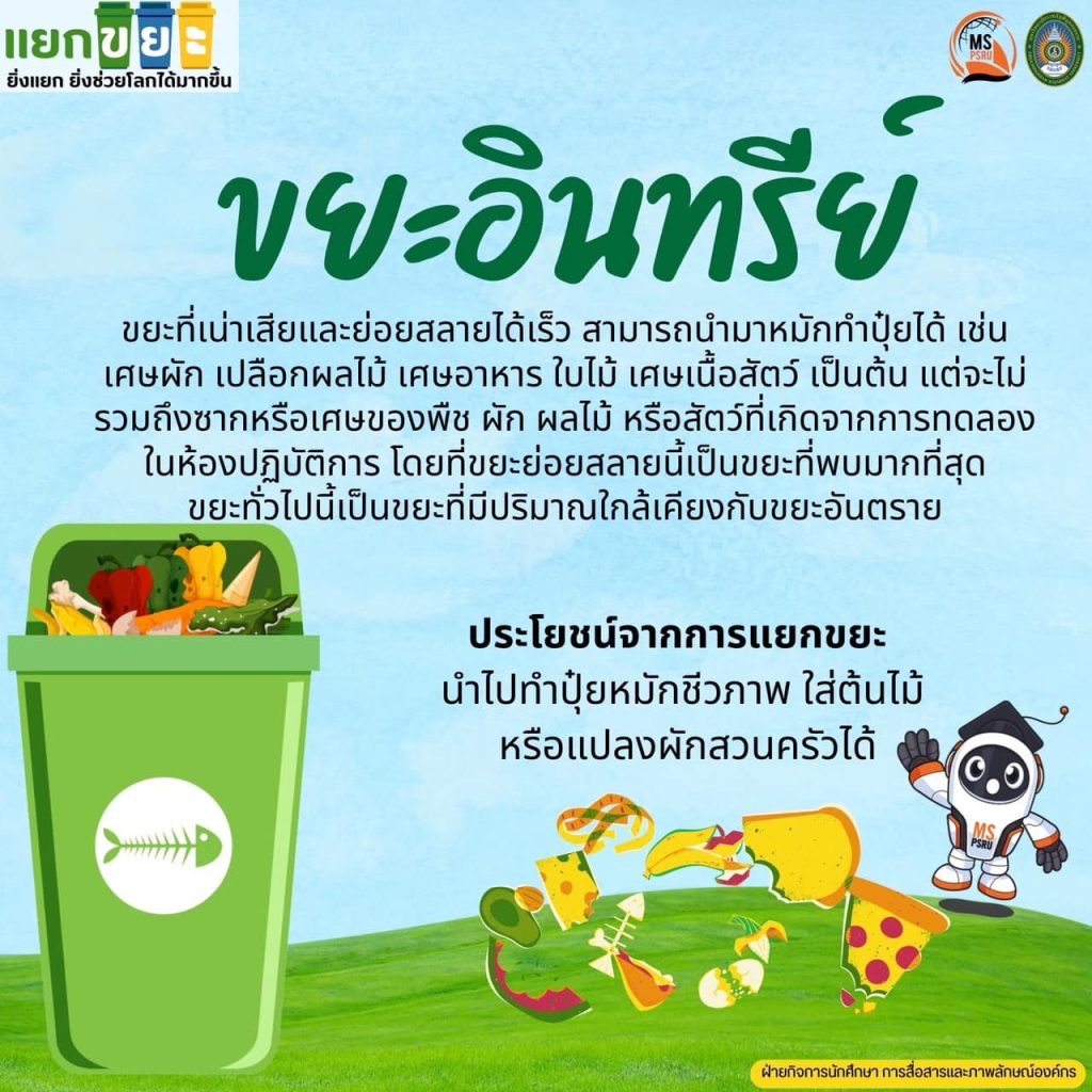 ข่าวประชาสัมพันธ์แยกขยะ ยิ่งแยก ยิ่งช่วยโลกได้มากขึ้น สิงหาคม 27, 2024ตุลาคม 15, 2024 - by admin #แค่แยกไม่ยาก ขยะที่ออกจากมือเรา ช่วยแบ่งเบาภาระโลก คณะวิทยาการจัดการร่วมมือกันแยกขยะก่อนทิ้ง FacebookFacebookXTwitterLINELine