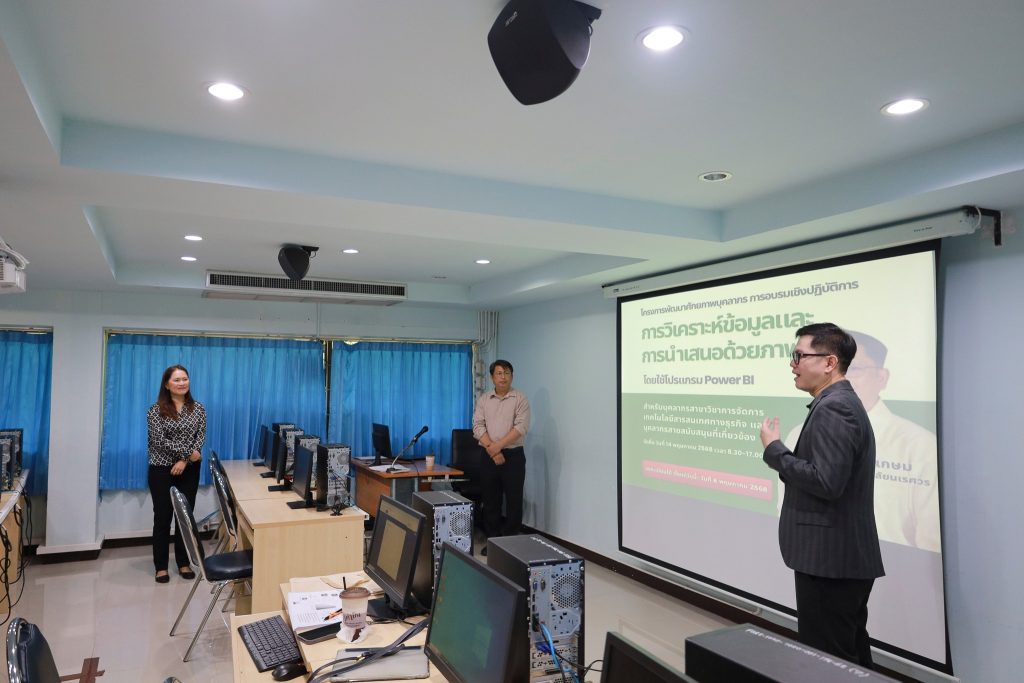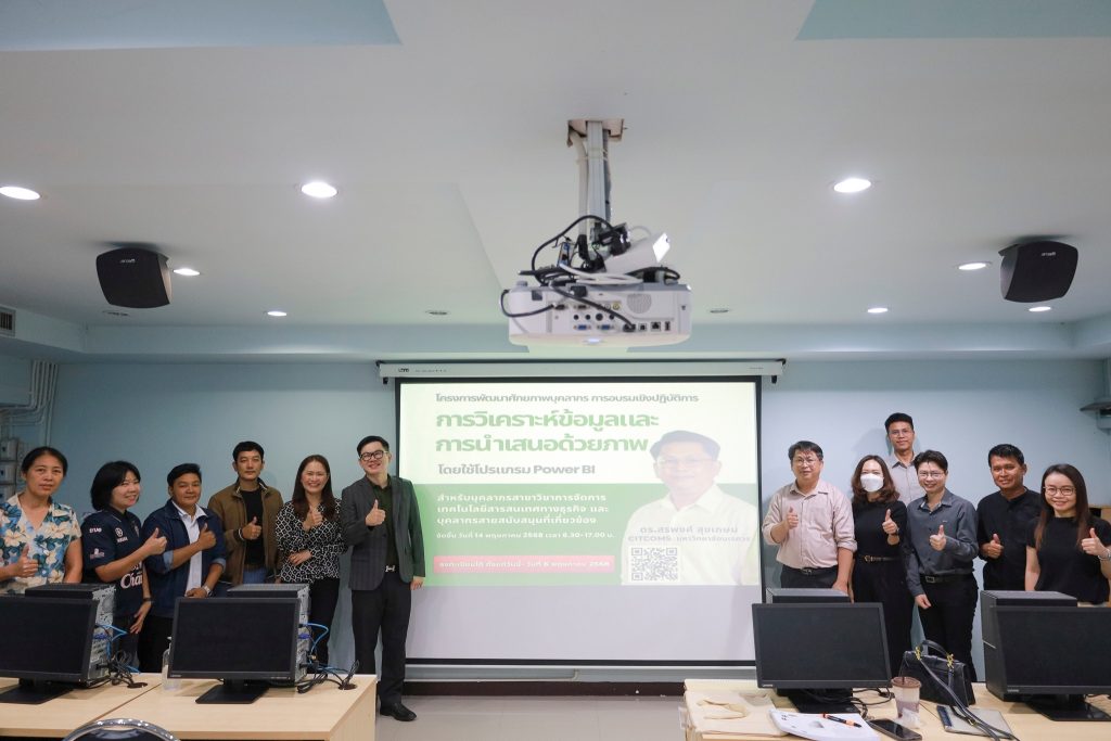 จัดโครงการพัฒนาศักยภาพบุคลากร “การวิเคราะห์ข้อมูลและการนำเสนอด้วยภาพ โดยใช้โปรแกรม Power BI” ณ ห้องปฏิบัติการคอมพิวเตอร์ ป103 คณะวิทยาการจัดการ มรพส.