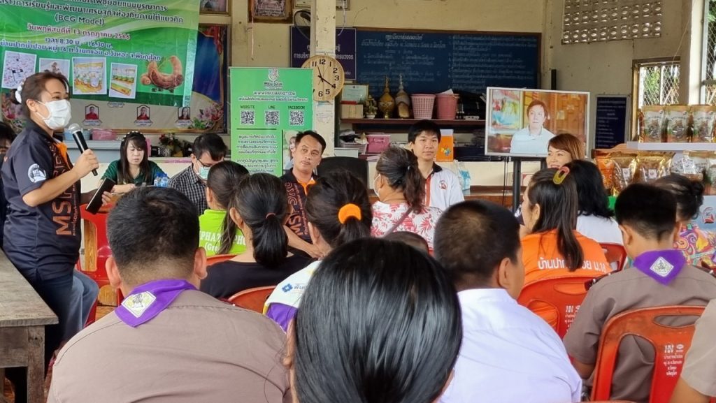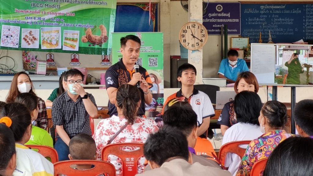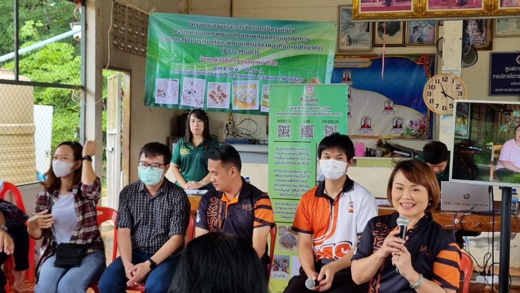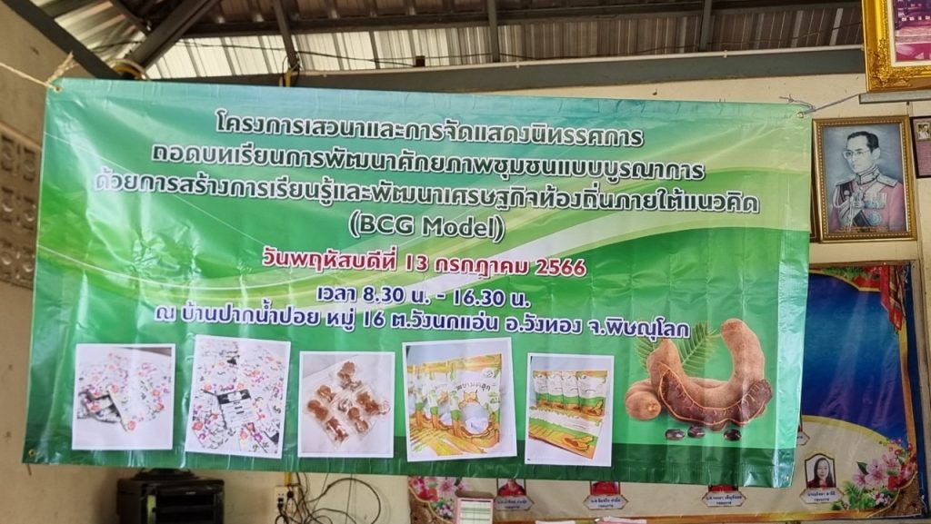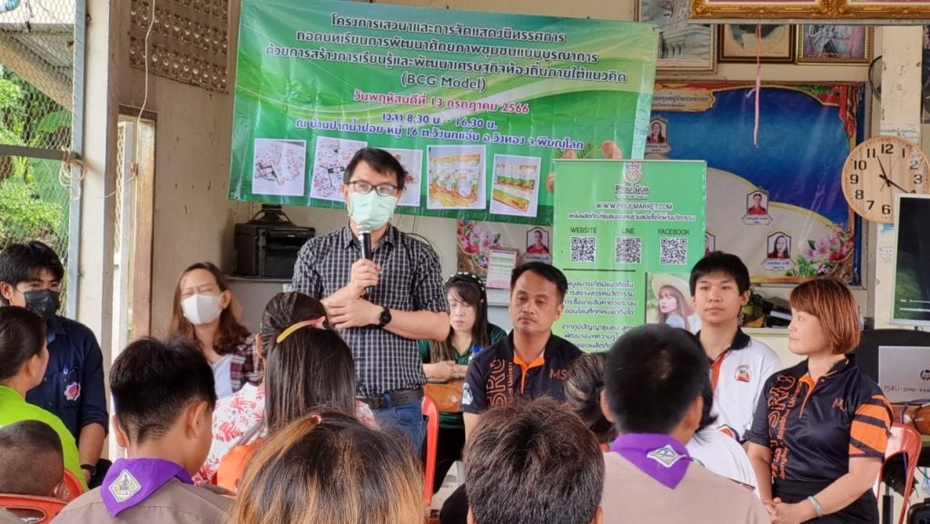 จัด “โครงการเสาวนาและการจัดแสดงนิทรรศการถอดบทเรียนการพัฒนาศักยภาพชุมชนแบบบูรณาการ ด้วยการสร้างการเรียนรู้และพัฒนาเศรษฐกิจท้องถิ่นภายใต้แนวคิด (BCG Model)” ณ บ้านปากน้ำปอย หมู่ 16 ต.วังนกแอ่น อ.วังทอง จ.พิษณุโลก เพื่อสรุปผลการดำเนินโครงการทั้งต้นน้ำ กลางน้ำ และปลายน้ำ ประกอบด้วย