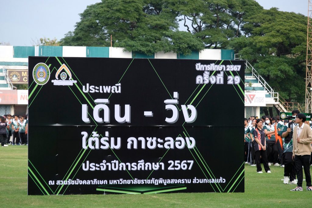 เมื่อวันศุกร์ที่ 8 พฤศจิกายน 2567 คณะวิทยาการจัดการนำโดยคณบดี รองคณบดี คณาจารย์ บุคลากร และนักศึกษา เข้าร่วมกิจกรรมประเพณีเดิน – วิ่ง ใต้ร่ม…กาซะลอง ครั้งที่ 29 ” ประจำปีการศึกษา 2567 ณ มหาวิทยาลัยราชภัฏพิบูลสงคราม ส่วนทะเลเเก้ว