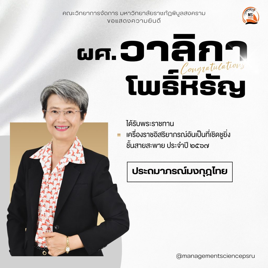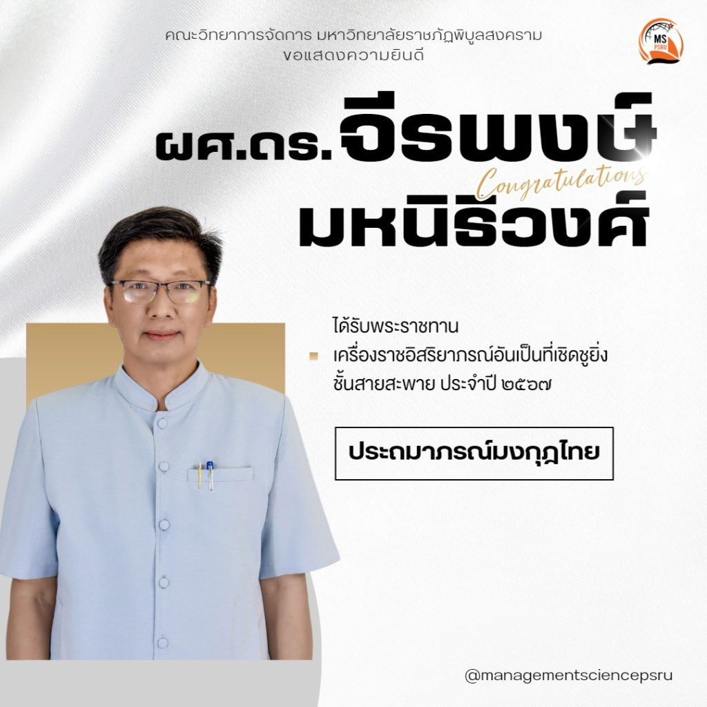 ขอแสดงความยินดีกับบุคลากรที่ได้รับพระราชทานเครื่องราชอิสริยาภรณ์อันเป็นที่เชิดชูยิ่ง ชั้นสายสะพาย ประจำปี ๒๕๖๗