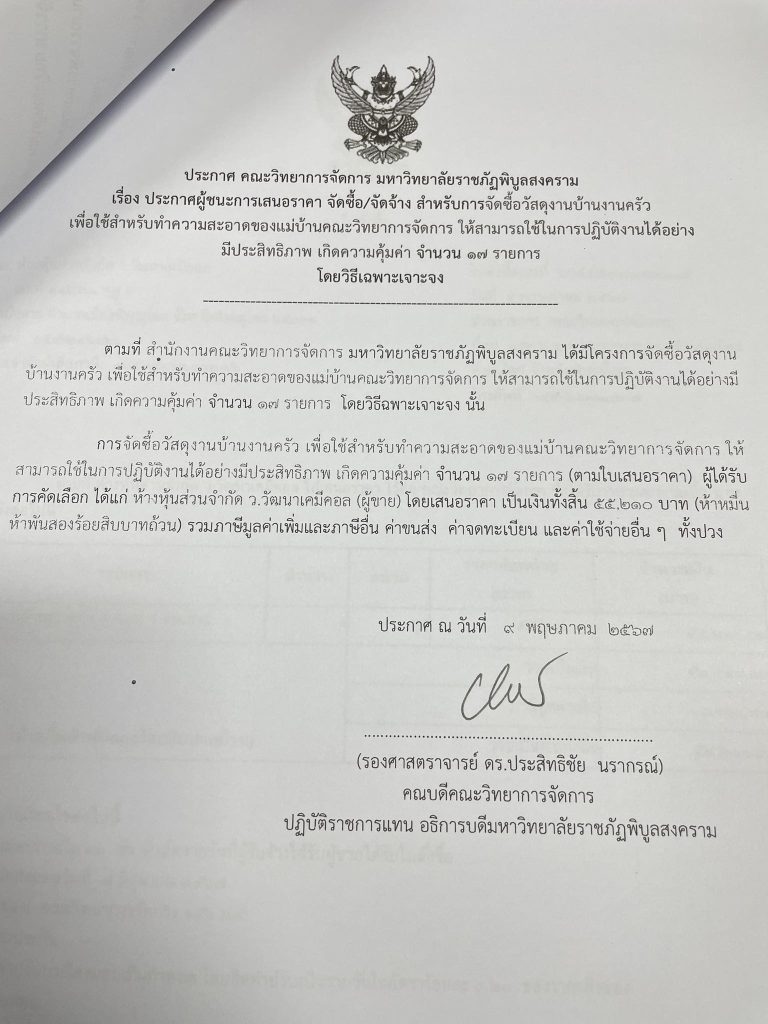 ข่าวประกาศผู้ชนะราคาประกาศ คณะวิทยาการจัดการ มหาวิทยาลัยราชภัฏพิบูลสงคราม เรื่อง ประกาศผู้ชนะการเสนอราคา จัดซื้อ/จัดจ้าง สำหรับการซื้อวัสดุงานบ้านงานครัว จำนวน 17 รายการ June 18, 2024June 18, 2024 - by ปาลิดา เรียญเพ็ช FacebookFacebookXTwitterLINELine