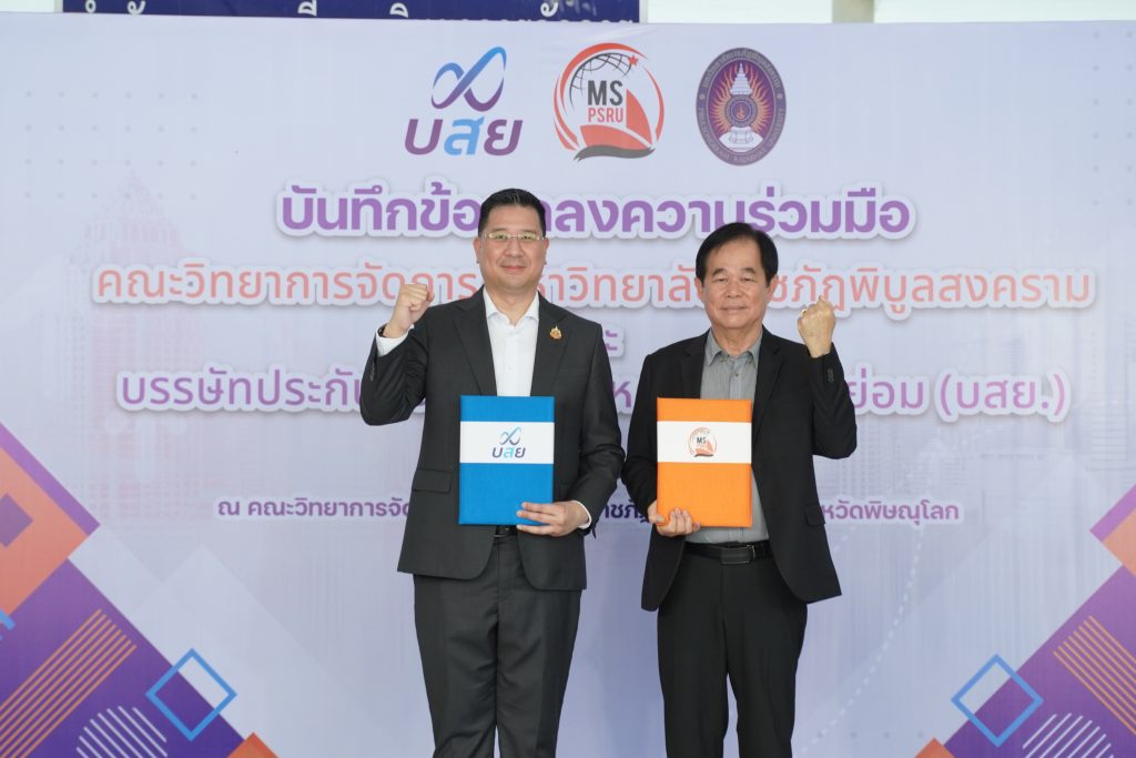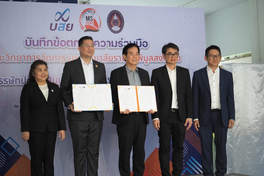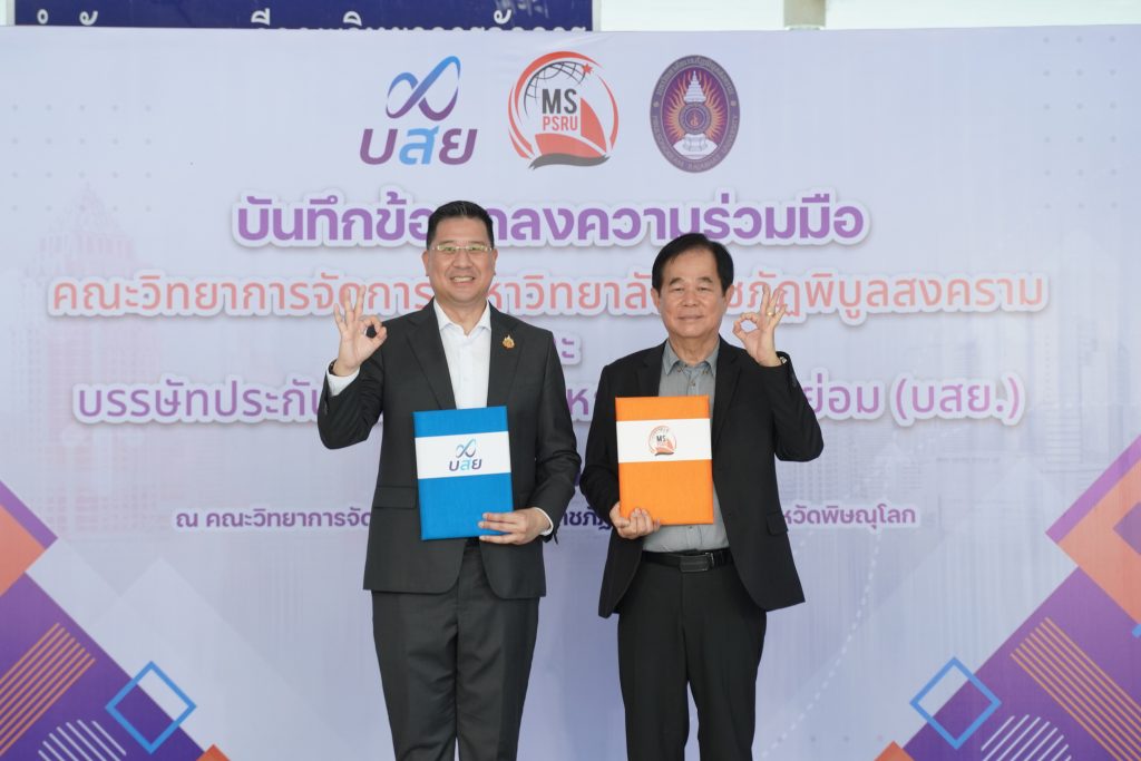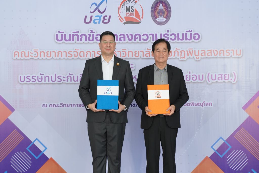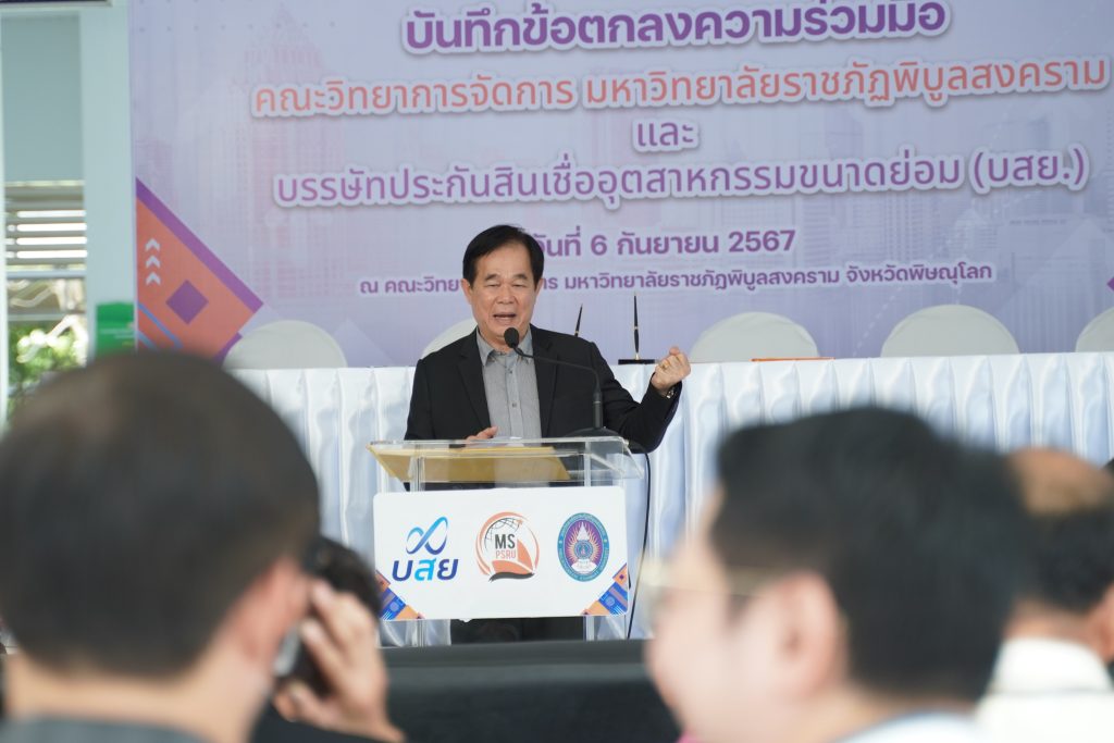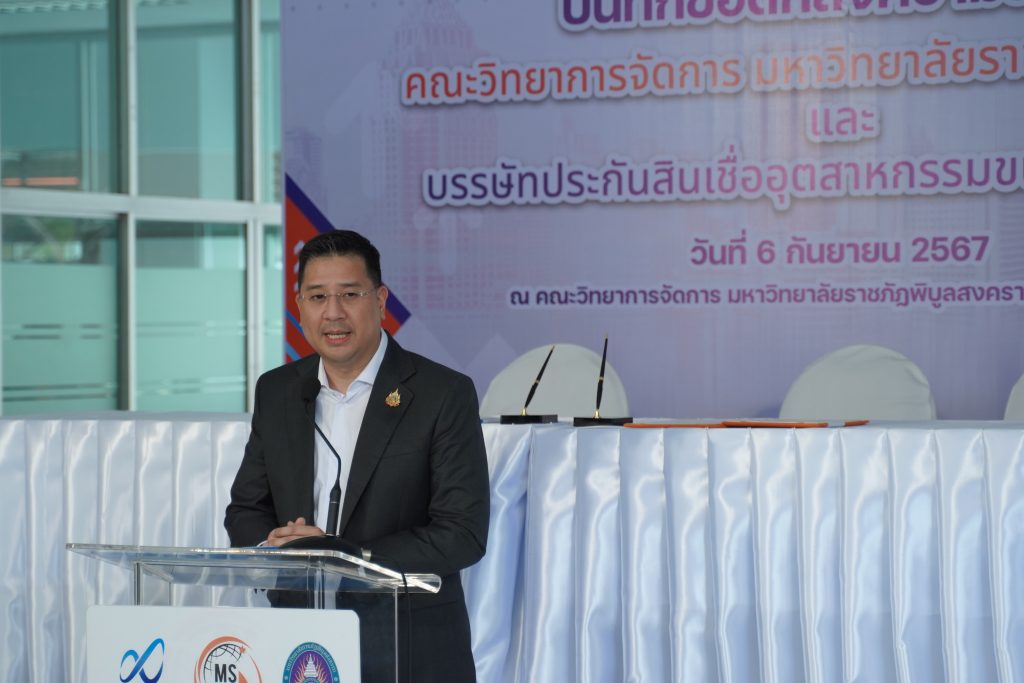 วันที่ 6 กันยายน 2567 ณ คณะวิทยาการจัดการ มหาวิทยาลัยราชภัฏพิบูลสงคราม มหาวิทยาลัยราชภัฏพิบูลสงคราม นำโดย ผศ.ดร.ชุมพล เสมาขันธ์ อธิการบดีมหาวิทยาลัยราชภัฏพิบูลสงคราม และ บรรษัทประกันสินเชื่ออุตสาหกรรมขนาดย่อม โดย นายสิทธิกร ดิเรกสุนทร กรรมการและผู้จัดการทั่วไป ลงนามบันทึกข้อตกลงความร่วมมือ (MOU) ด้านวิชาการและวิชาชีพโดยเป็นความร่วมมือตาม “โครงการ บสย. MS Business School” ซึ่งมีวัตถุประสงค์ดังนี้