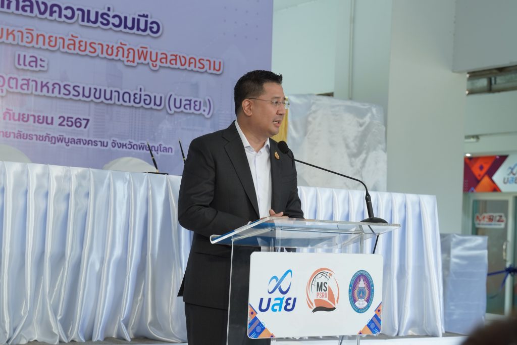 พิธีลงนามบันทึกข้อตกลงความร่วมมือ (MOU) ระหว่าง มหาวิทยาลัยราชภัฏพิบูลสงคราม กับ บรรษัทประกันสินเชื่ออุตสาหกรรมขนาดย่อม (บสย.) และพิธีเปิดศูนย์ช่วยเพื่อน SMEs (MS Business Center)