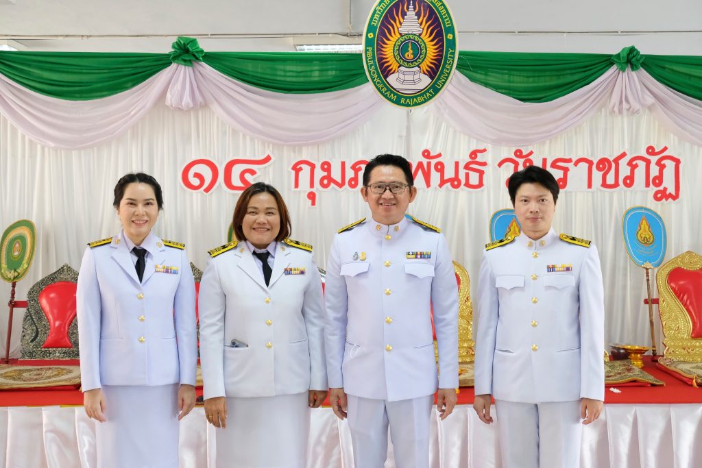 เมื่อวันที่ 14 กุมภาพันธ์ 2567 ผศ.ดร.ประสิทธิชัย นรากรณ์ คณบดีคณะวิทยาการจัดการ คณะผู้บริหาร และบุคลากรคณะวิทยาการจัดการ ร่วมงานวันราชภัฏ ประจำปี 2567 พิธีพระราชทานเครื่องราชอิสริยาภรณ์ ชั้นสายสะพาย ประจำปั 2565-2566 และกิจกรรมตักบาตรข้าวสารอาหารแห้ง ณ หอประชุมศรีวชิรโชติ มหาวิทยาลัยราชภัฏพิบูลสงคราม