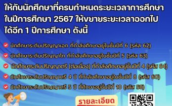 Public relationsประกาศสภามหาวิทยาลัยราชภัฏพิบูลสงคราม เรื่อง การขยายระยะเวลาการสำเร็จการศึกษาของนักศึกษา อันเนื่องมาจากการแพร่ระบาดของเชื้อไวรัสโคโรนา 2019 (COVID-19) พ.ศ. 2568 May 5, 2025 - by admin ประกาศสภามหาวิทยาลัยราชภัฏพิบูลสงคราม เรื่อง การขยายระยะเวลาการสำเร็จการศึกษาของนักศึกษา อันเนื่องมาจากการแพร่ระบาดของเชื้อไวรัสโคโรนา 2019 (COVID-19) พ.ศ. 2568 Read More