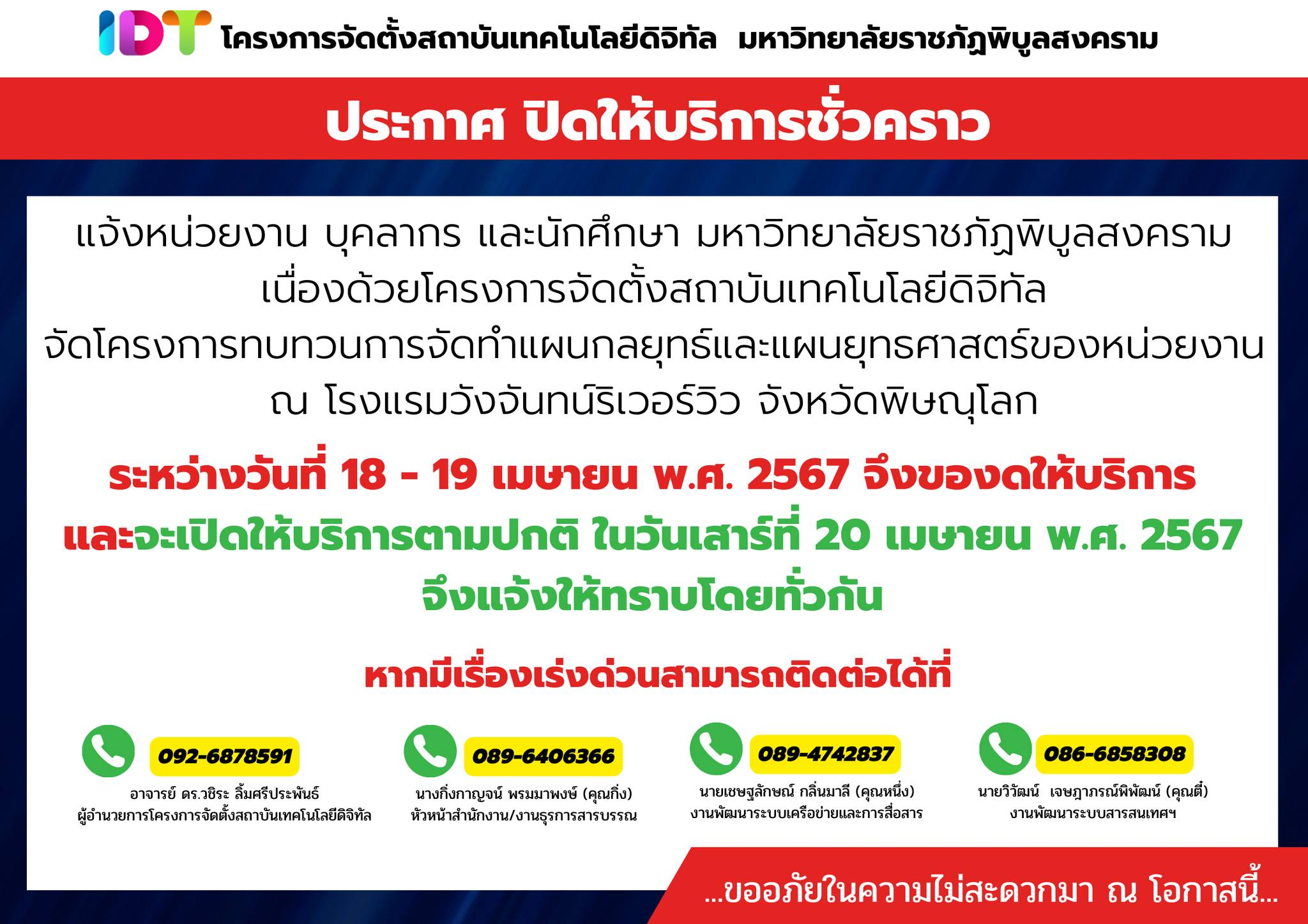 ข่าวประชาสัมพันธ์IDT PSRU ปิดให้บริการชั่วคราว เมษายน 17, 2024เมษายน 17, 2024 - by admin FacebookFacebookXTwitterLINELine