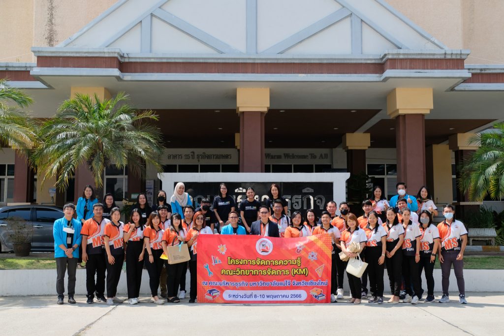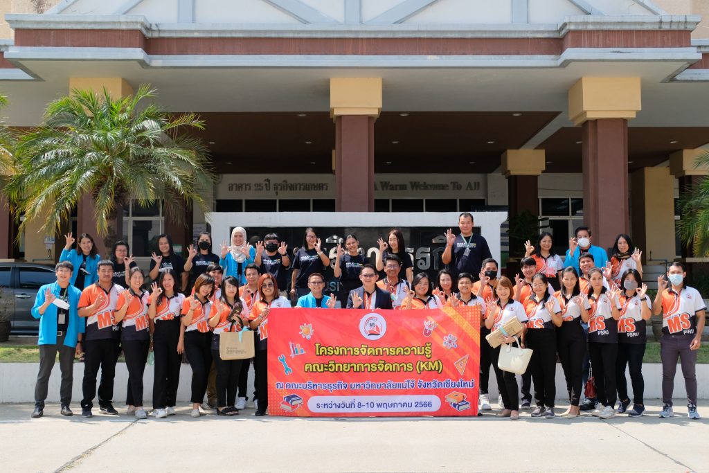 เมื่อวันที่ 9 พฤษภาคม 2566 คณะวิทยาการจัดการ นำโดย ผศ.ดร.ประสิทธิชัย นรากรณ์ คณบดีคณะวิทยาการจัดการ พร้อมด้วยคณะผู้บริหารและบุคลากรสายสนับสนุน ร่วมโครงการจัดการความรู้คณะวิทยาการจัดการ ณ คณะบริหารธุรกิจ มหาวิทยาลัยแม่โจ้ โดย รองศาสตราจารย์ ดร.จำเนียร บุญมาก คณบดีคณะบริหารธุรกิจ ผู้บริหารและบุคลากร ร่วมต้อนรับ โดยมีวัตุประวงค์เพื่อแลกเปลี่ยนเรียนรู้ด้านการนำเทคโนโลยีคอมพิวเตอร์ สารสนเทศมาประยุกต์ใช้ในการจัดการความรู้อย่างเป็นระบบ และส่งเสริมให้เกิดการสร้างสังคมแลกเปลี่ยนเรียนรู้ภายในหน่วยงาน