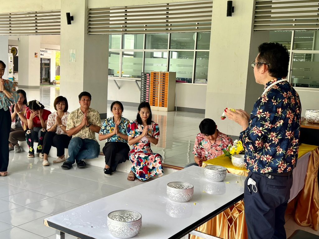 วันที่ 12 เมษายน 2566 ที่ผ่านมาคณะผู้บริหาร และเจ้าหน้าที่ จัดพิธีรดน้ำขอพรผู้บริหาร เพื่อสืบสานประเพณีอันดีงามของไทย โดยมี ผศ.ดร.ประสิทธิชัย นรากรณ์ คณบดีคณะวิทยาการจัดการ กล่าวให้พรแก่ คณะผู้บริหาร และเจ้าหน้าที่ ณ สำนักงานคณะวิทยาการจัดการ