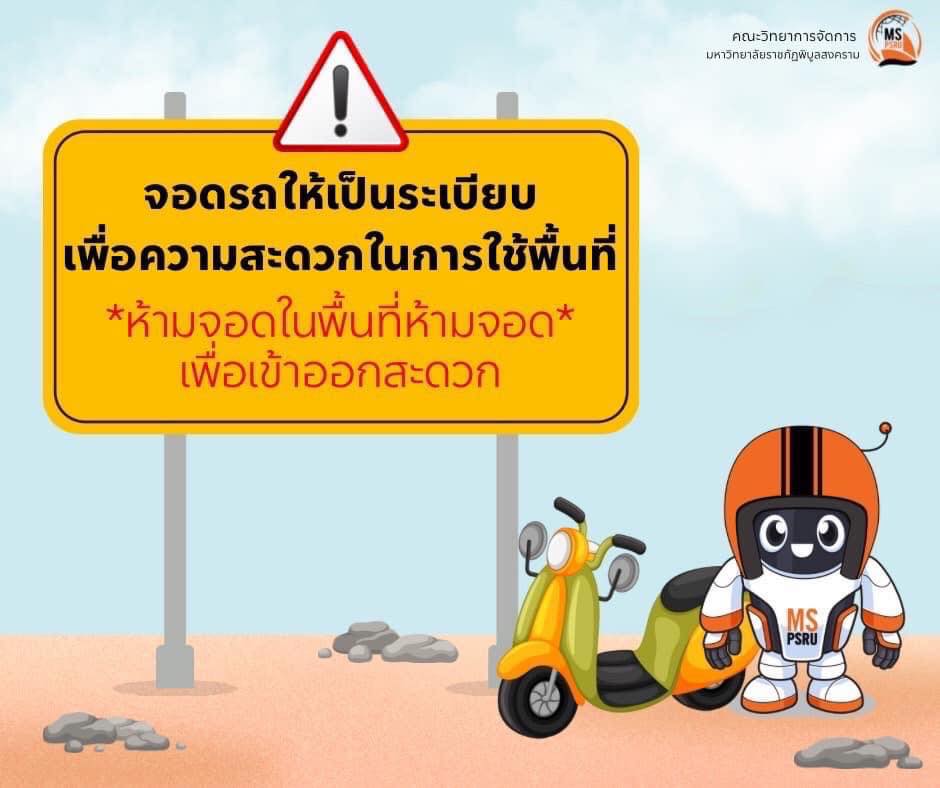 ขอความร่วมมือนักศึกษาคณะวิทยาการจัดการทุกท่าน จอดรถให้เป็นระเบียบห้ามจอดในพื้นที่ห้ามจอดเพื่อความสะดวกในการเข้าออก