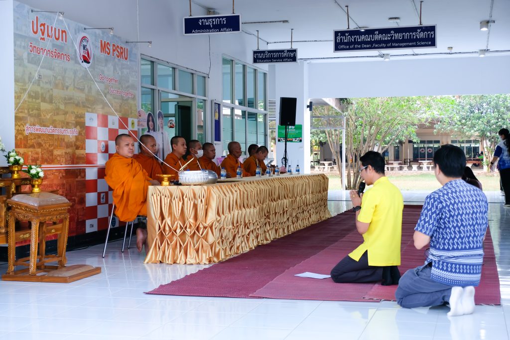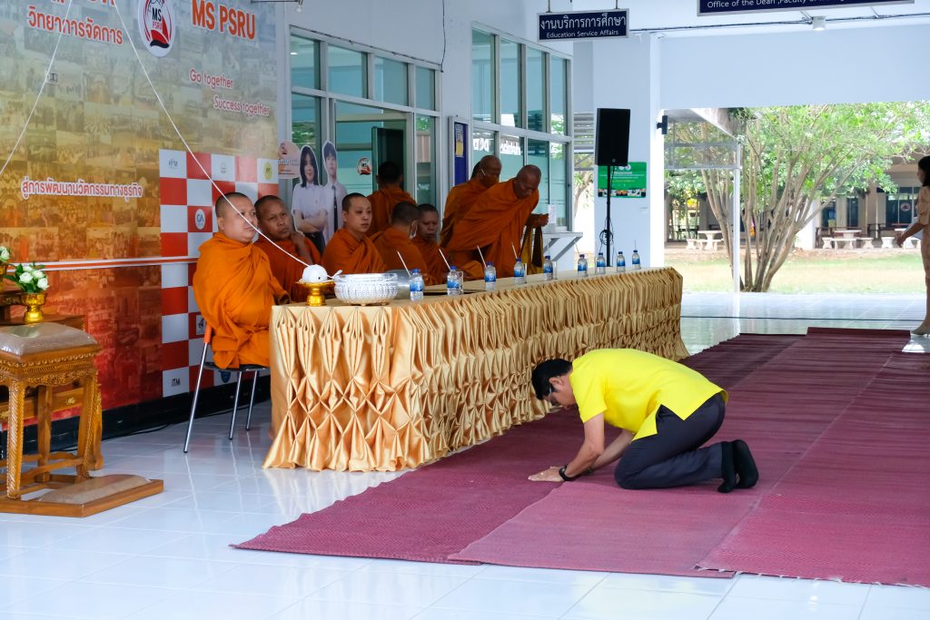 คณะวิทยาการจัดการ จัดโครงการสืบสานวัฒนธรรมไทย กิจกรรม “ทำบุญตักบาตรเนื่องในวันขึ้นปีใหม่” ทำบุญตักบาตรข้าวสารอาหารแห้งพระสงฆ์ 9 รูป เพื่อสืบสานประเพณีวัฒนธรรมอันดีงาม ร่วมทำนุบำรุงพุทธศาสนา รวมทั้งเพื่อความเป็นสิริมงคลในการเริ่มต้นปีใหม่